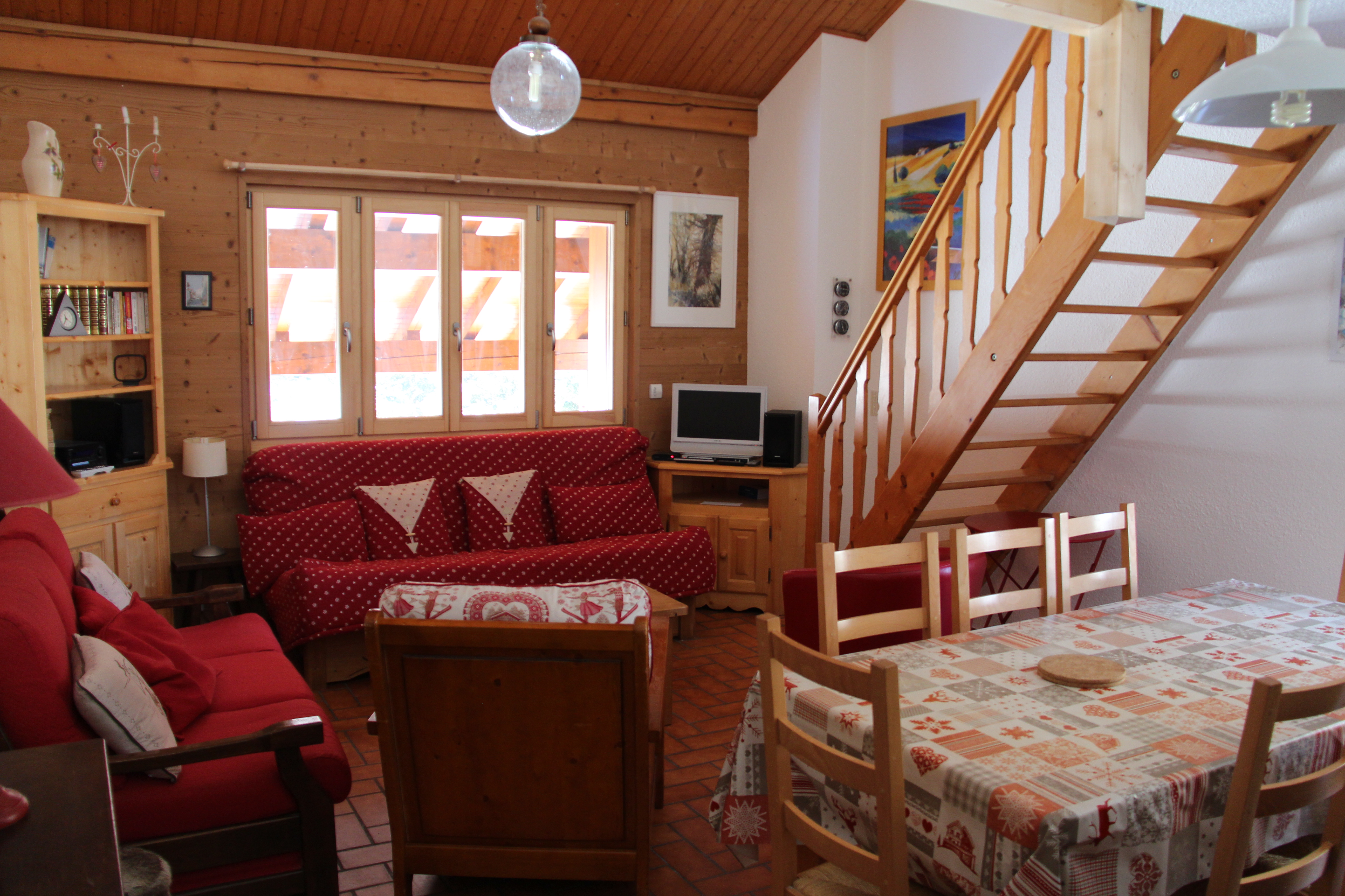 Appartement classé 2 étoiles NN pour 6 personnes (possibilité de 2 couchages supplémentaires pour des enfants), décoré avec beaucoup de soin situé au rez de chaussée d'un chalet en vieux bois avec un accès direct sur les pistes.