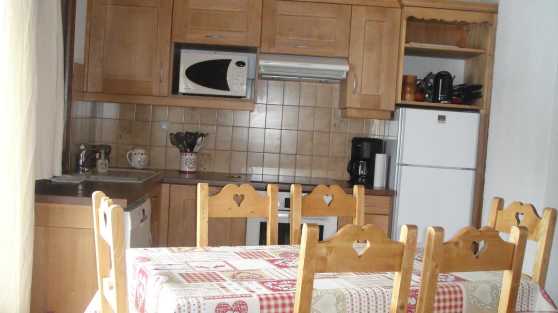 Appartement classé 2 étoiles NN pour 6 personnes (possibilité de 2 couchages supplémentaires pour des enfants), décoré avec beaucoup de soin situé au rez de chaussée d'un chalet en vieux bois avec un accès direct sur les pistes.