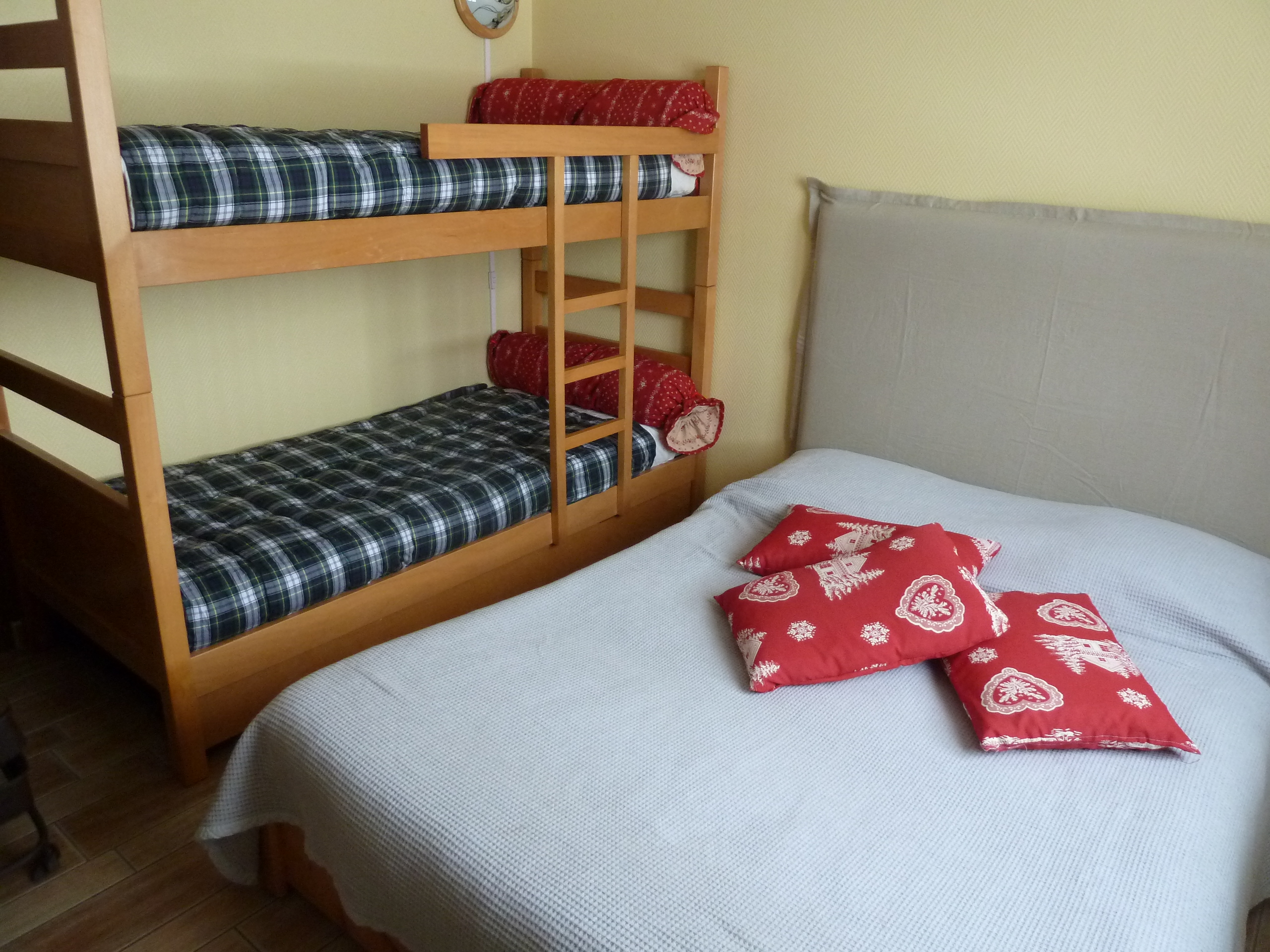 - Chambre 1 : 1 lit 140 x 190 pour 2 personnes + 1 lit superposé 90 x 190 pour 2 personnes