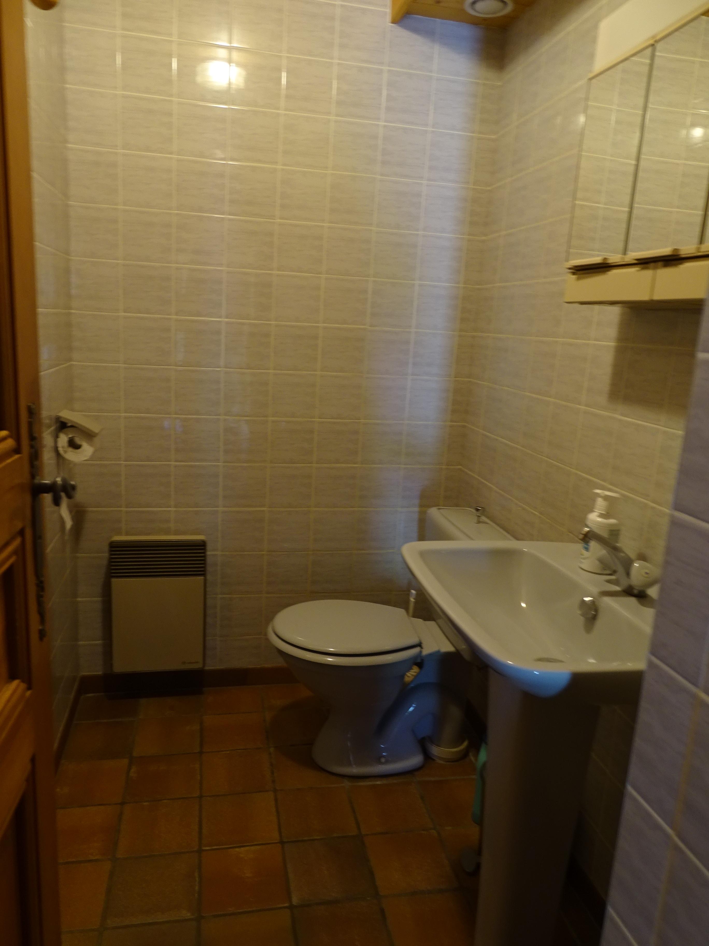 Une salle de bains (avec baignoire), et une salle d’eau avec WC, et un WC avec accès indépendant.