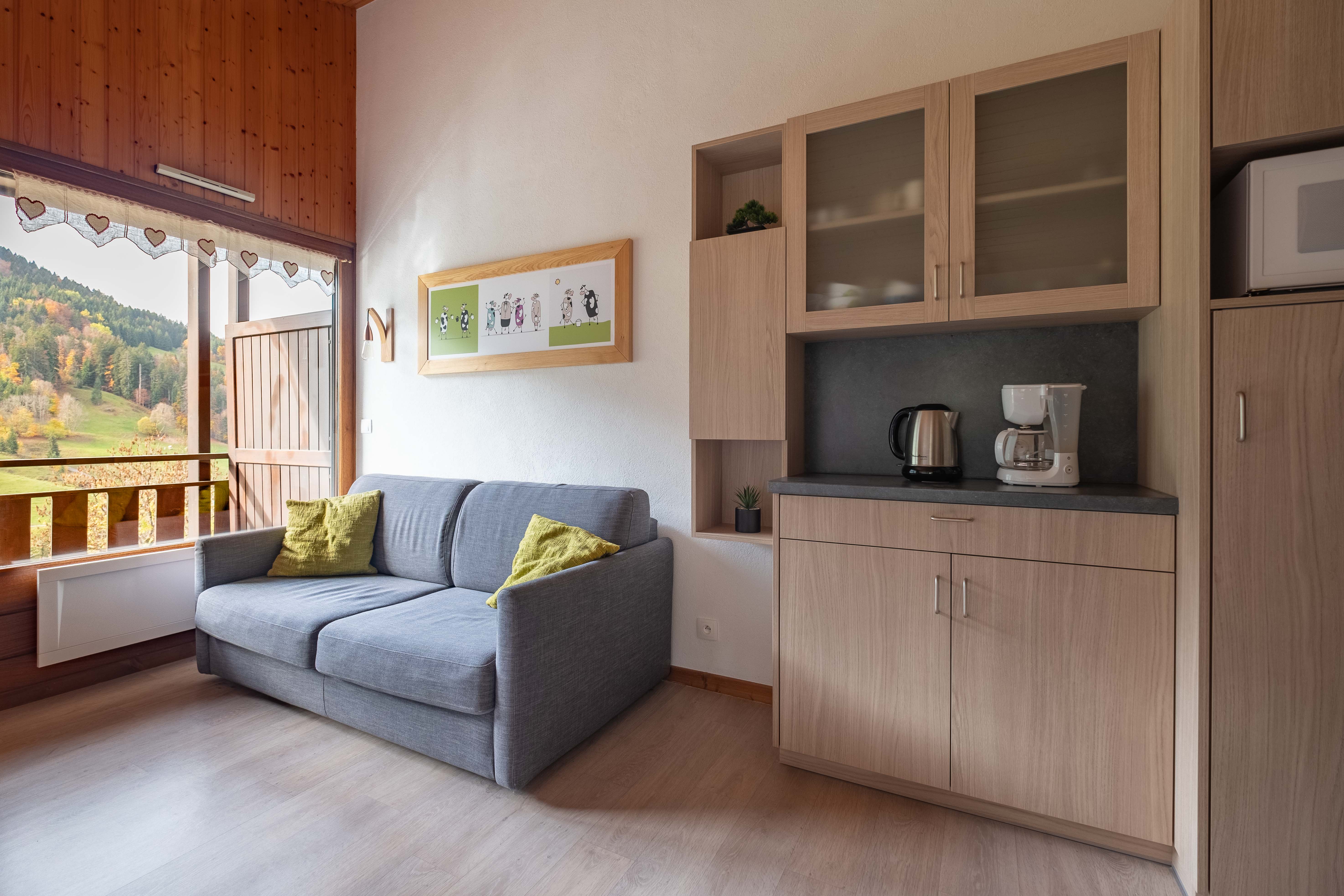 Joli studio de 21m2 pouvant accueillir jusqu'à 4 personnes, avec une très jolie vue face au Mont Lachat.