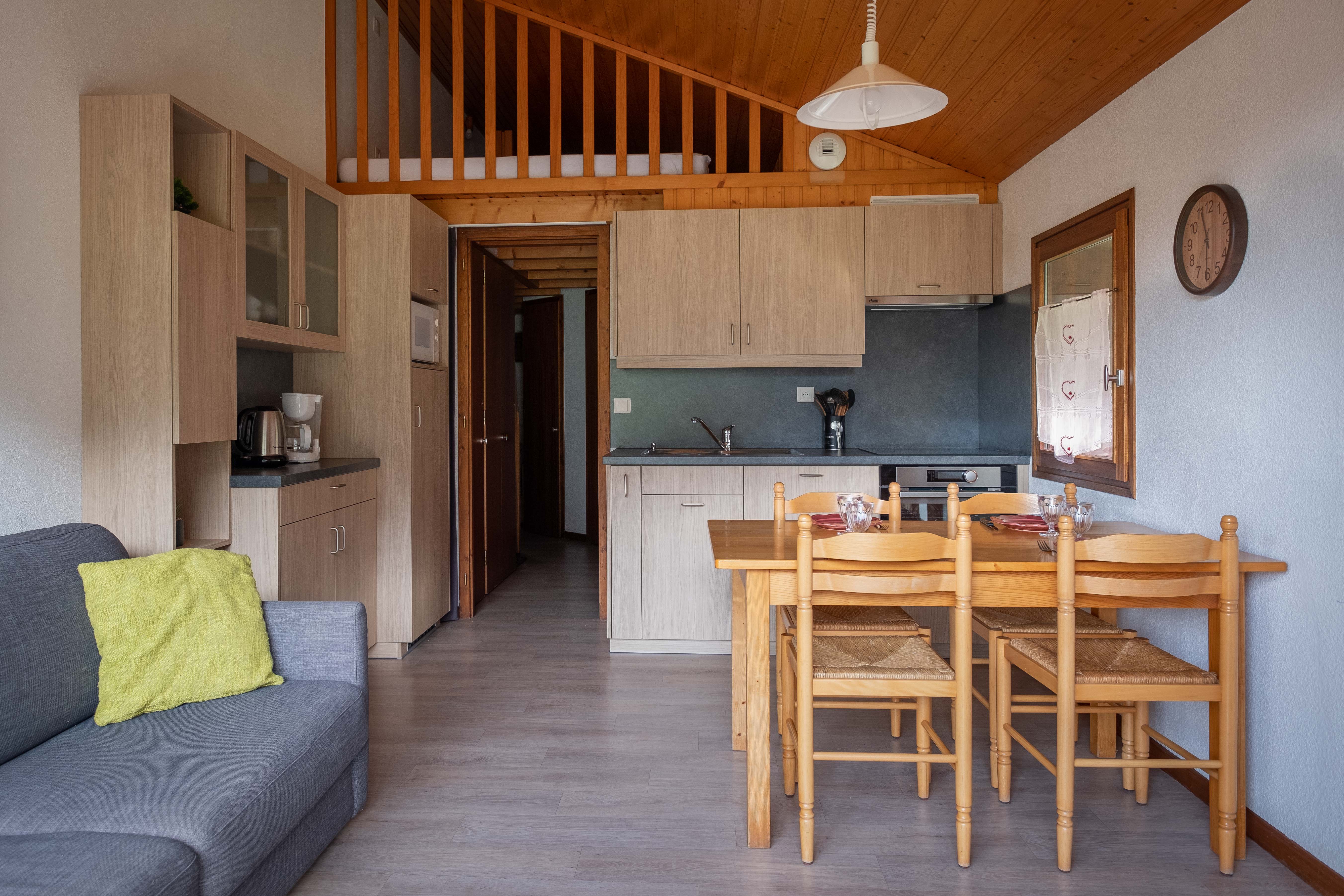 Appartement spacieux pour 4 personnes au 2ème étage d'un chalet mitoyen. Proche centre village, commerces et arrêt navettes.