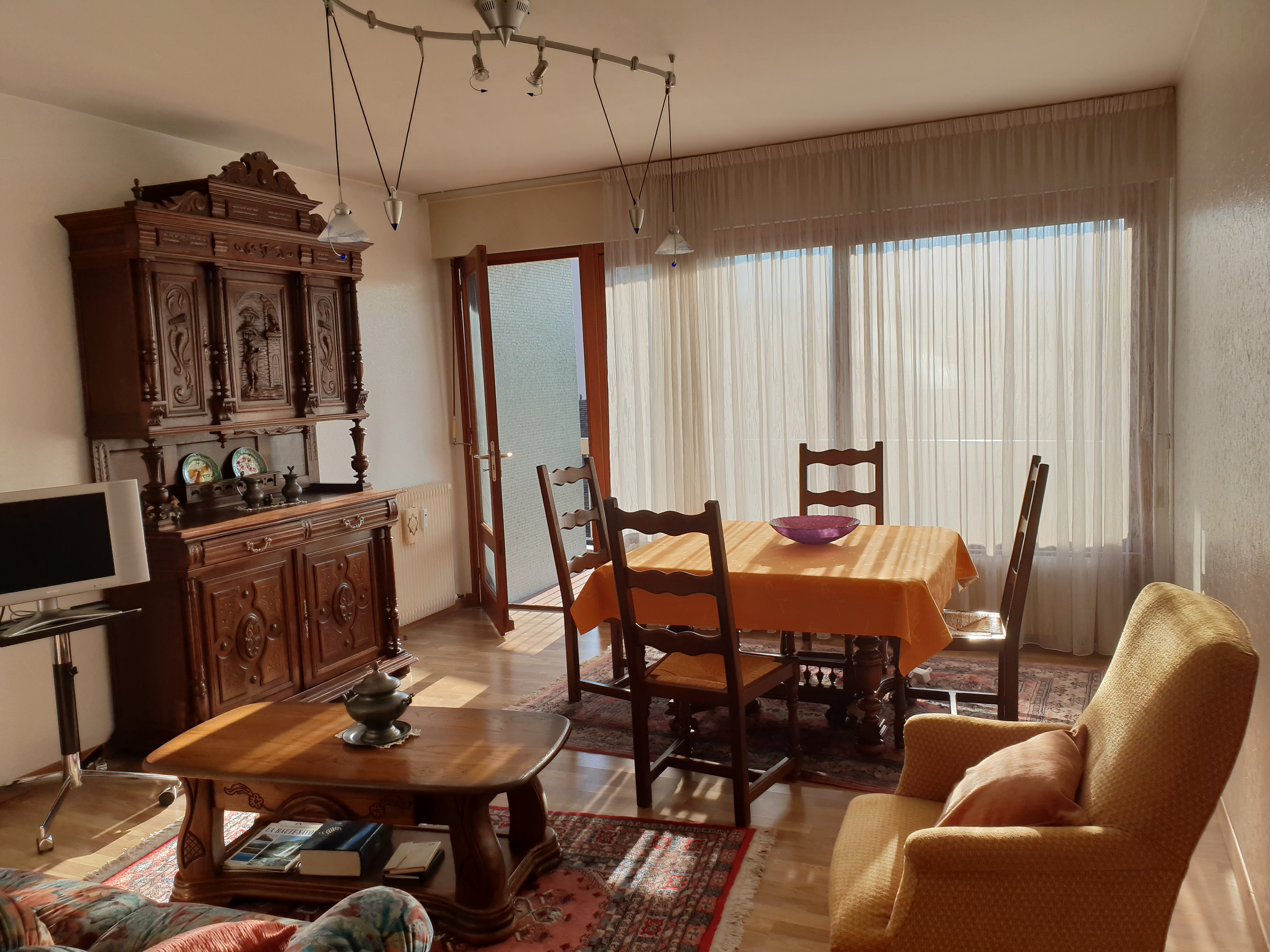 Appartement meublé de 54m2 situé au 1er étage d'une maison comprenant 2 appartements, dans un quartier résidentiel à l'est de Thonon-les-Bains .