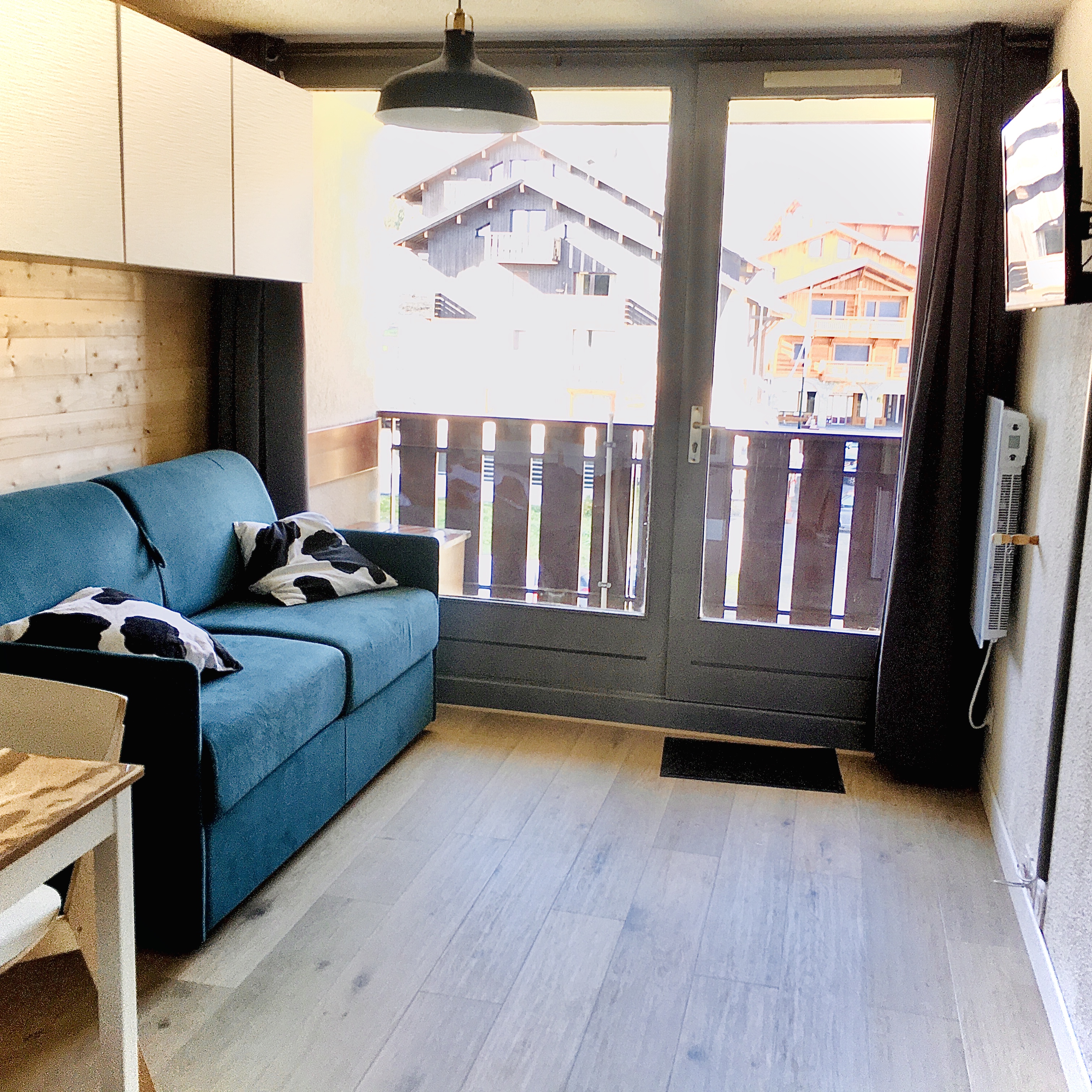 - Les Mouflons II - 22 m² - n°459 Salon et balcon Crédit photo : Dogimont Elodie