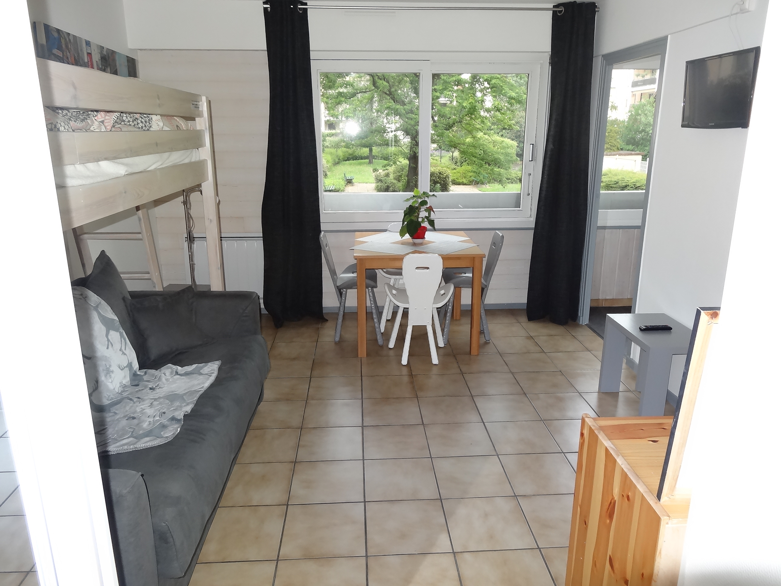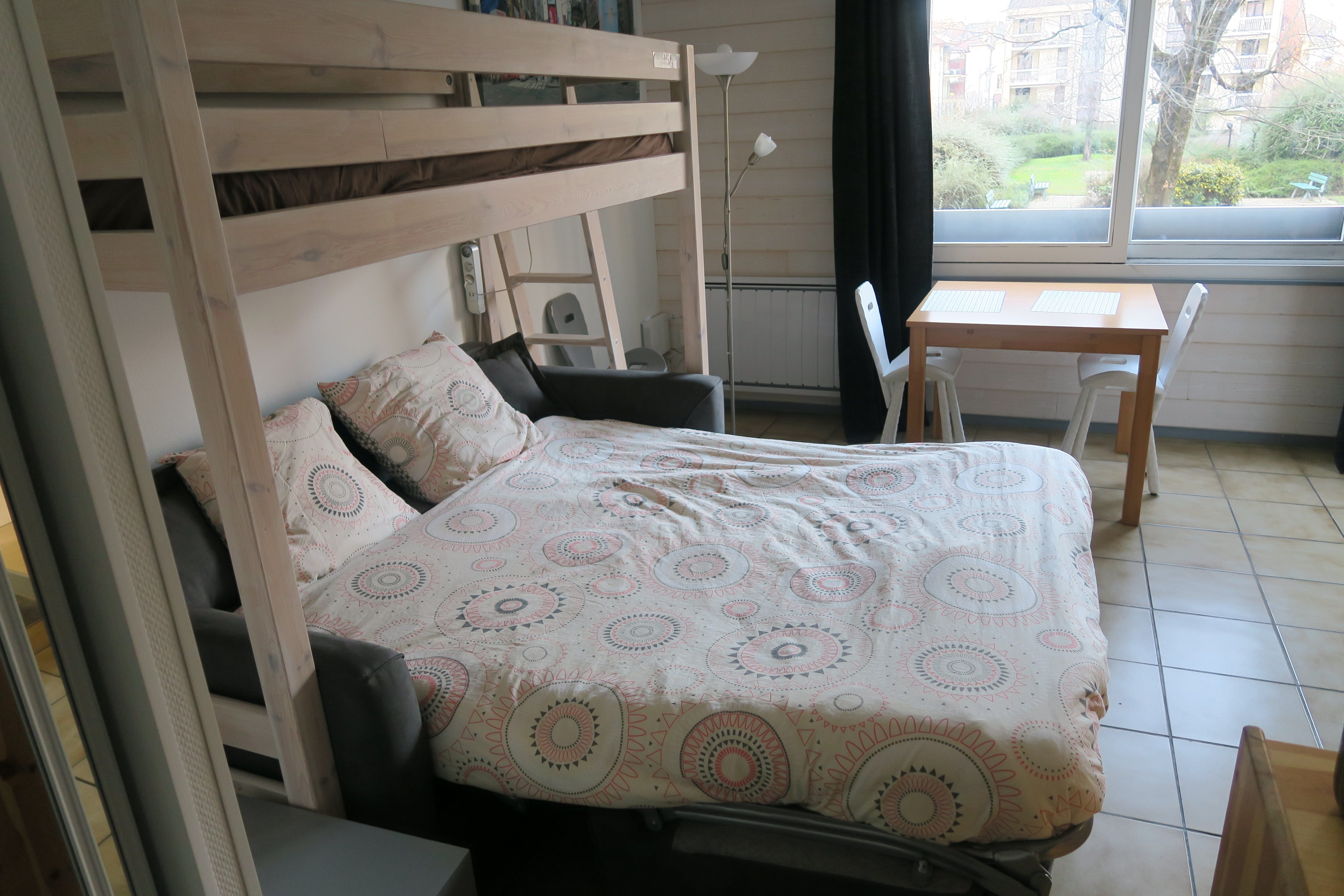 - Une pièce principale avec 1 convertible haut de gamme Bed express, 1 lit mezzanine (interdit au moins de 6 ans)