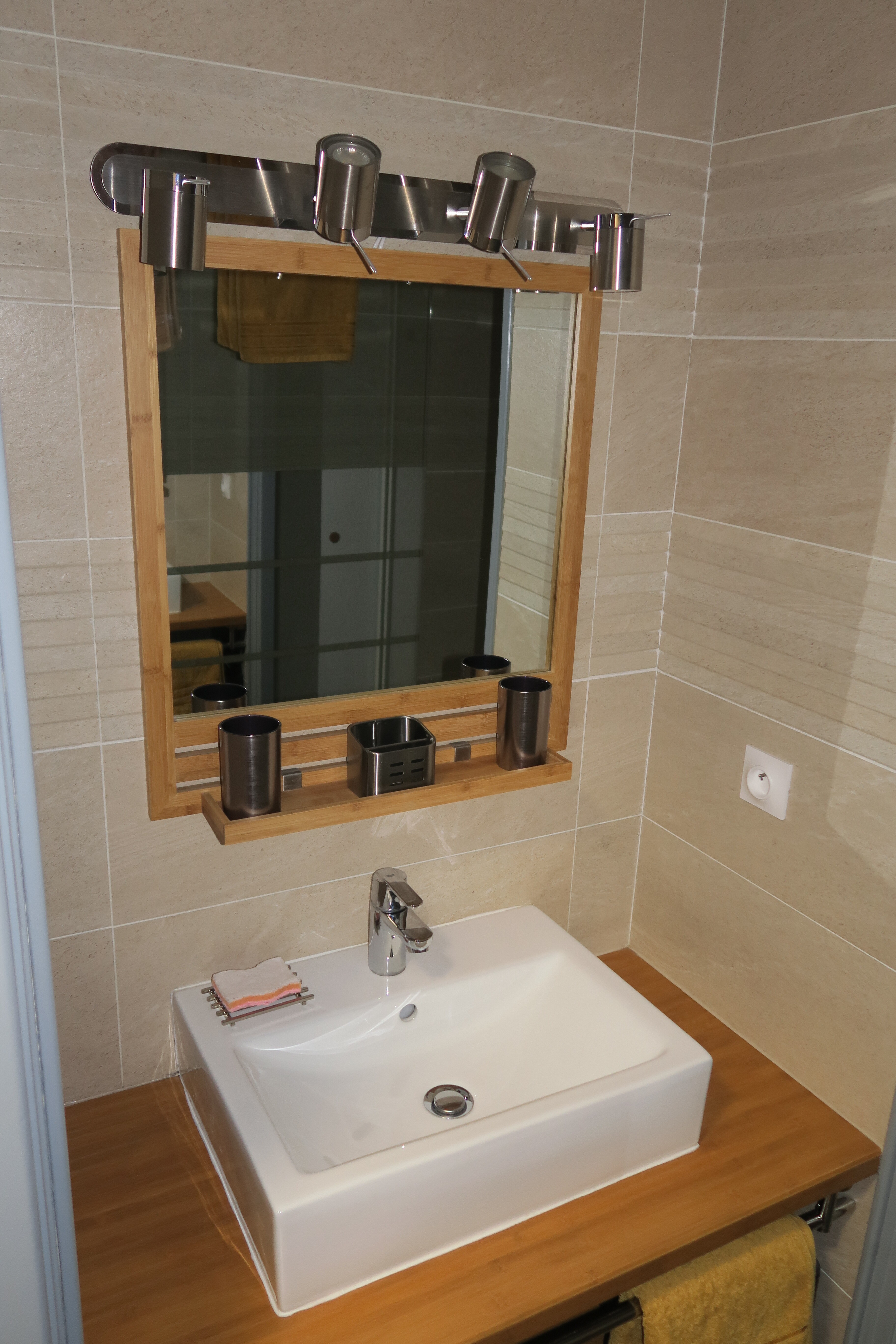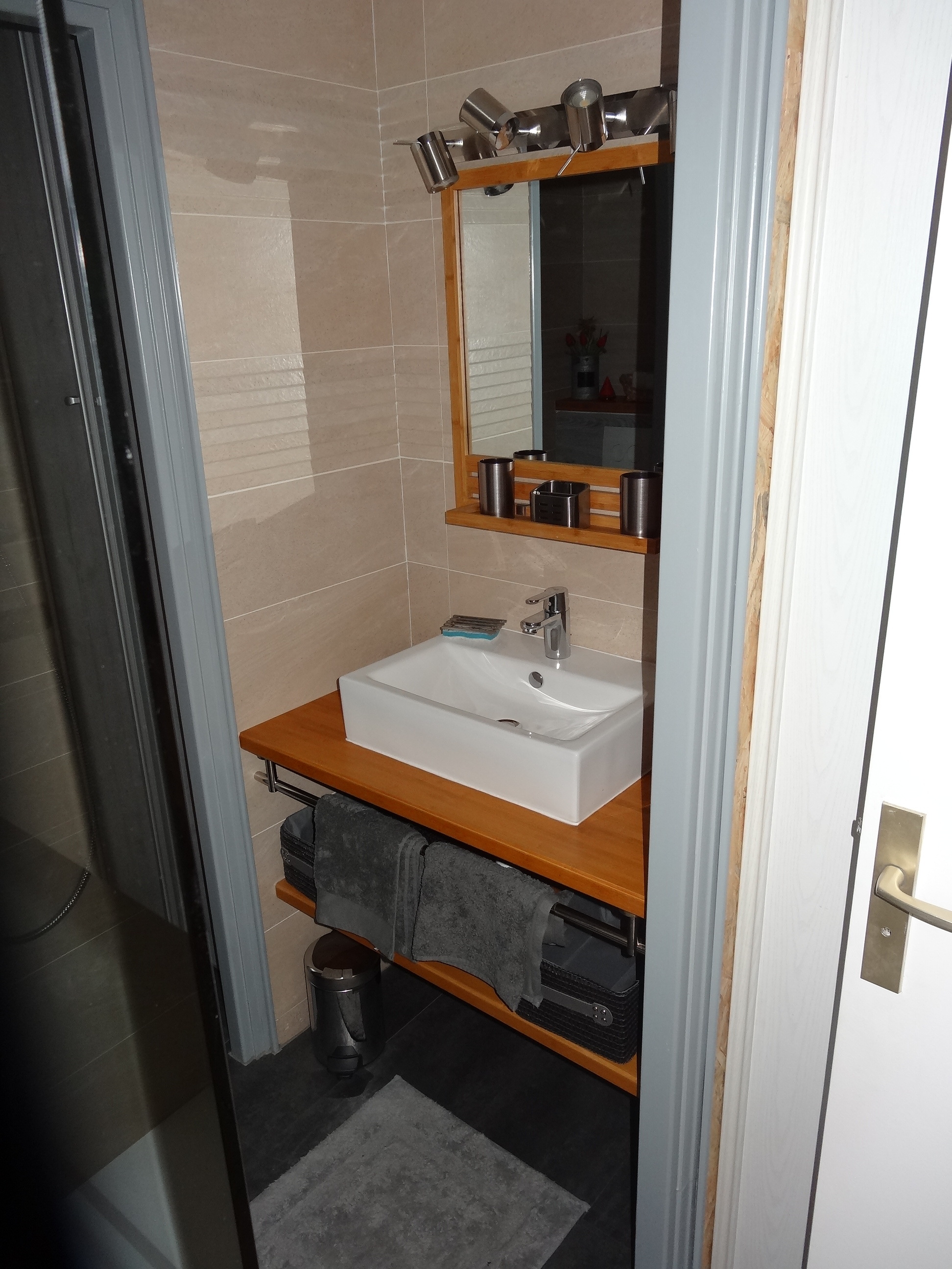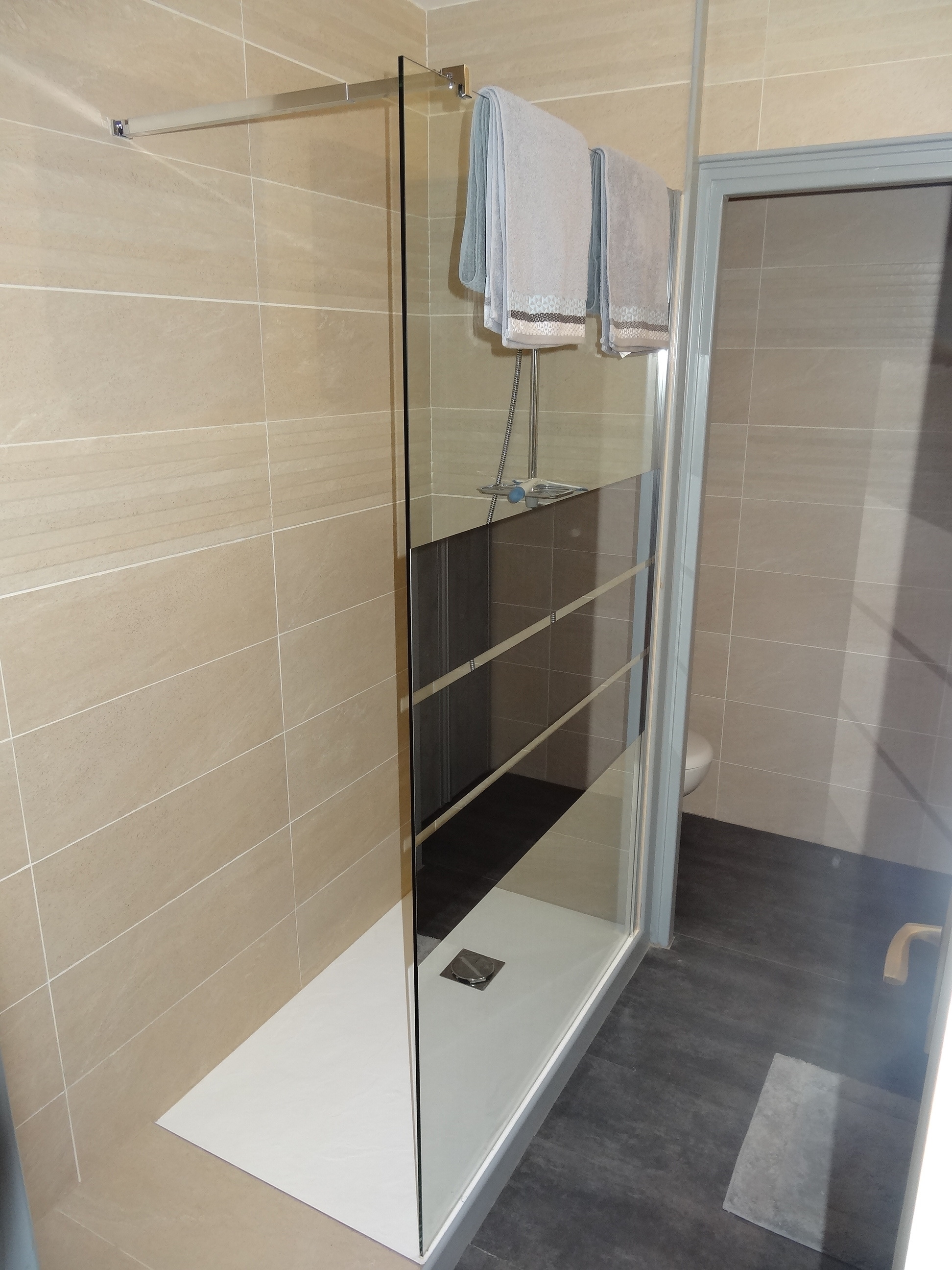 - SDB neuve avec douche à l’italienne et coin toilette (sèche-serviette, sèche- cheveux)