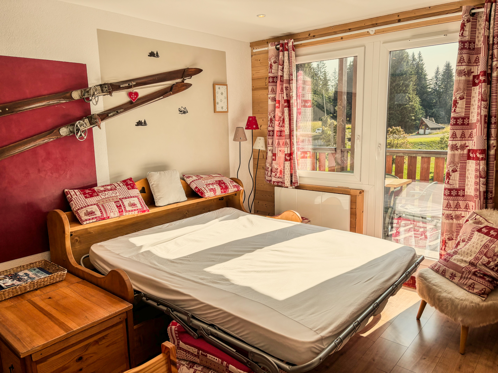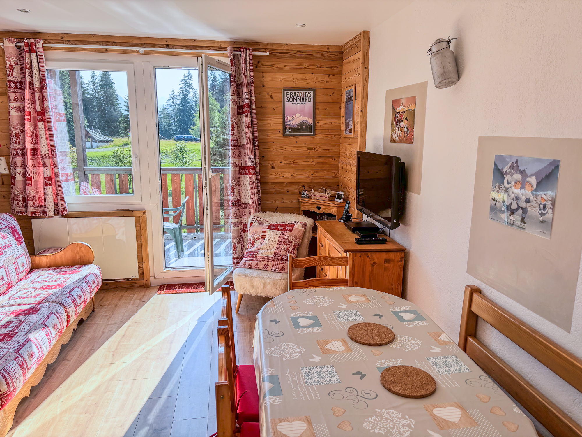 Bel appartement de plain-pied au Praz-de-Lys de 70 m2 dans chalet traditionnel rénové classé deux étoiles pour 6 personnes (possibilité d'accueillir 2 personnes supplémentaires). Terrasse privative.