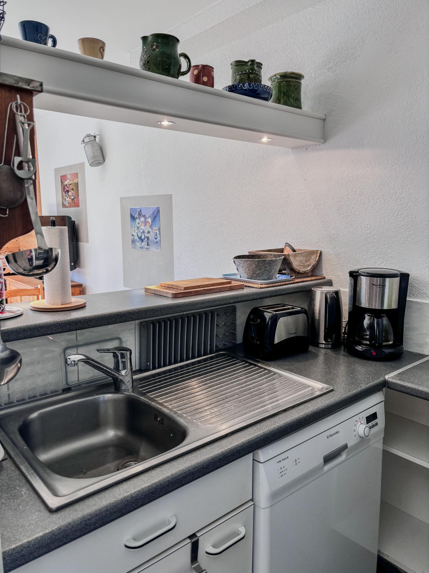Appareils ménagers : Appareil à raclette / plancha, Appareil à fondue, Grille-pain, Bouilloire électrique, Cafetière et Mixeur plongeant.