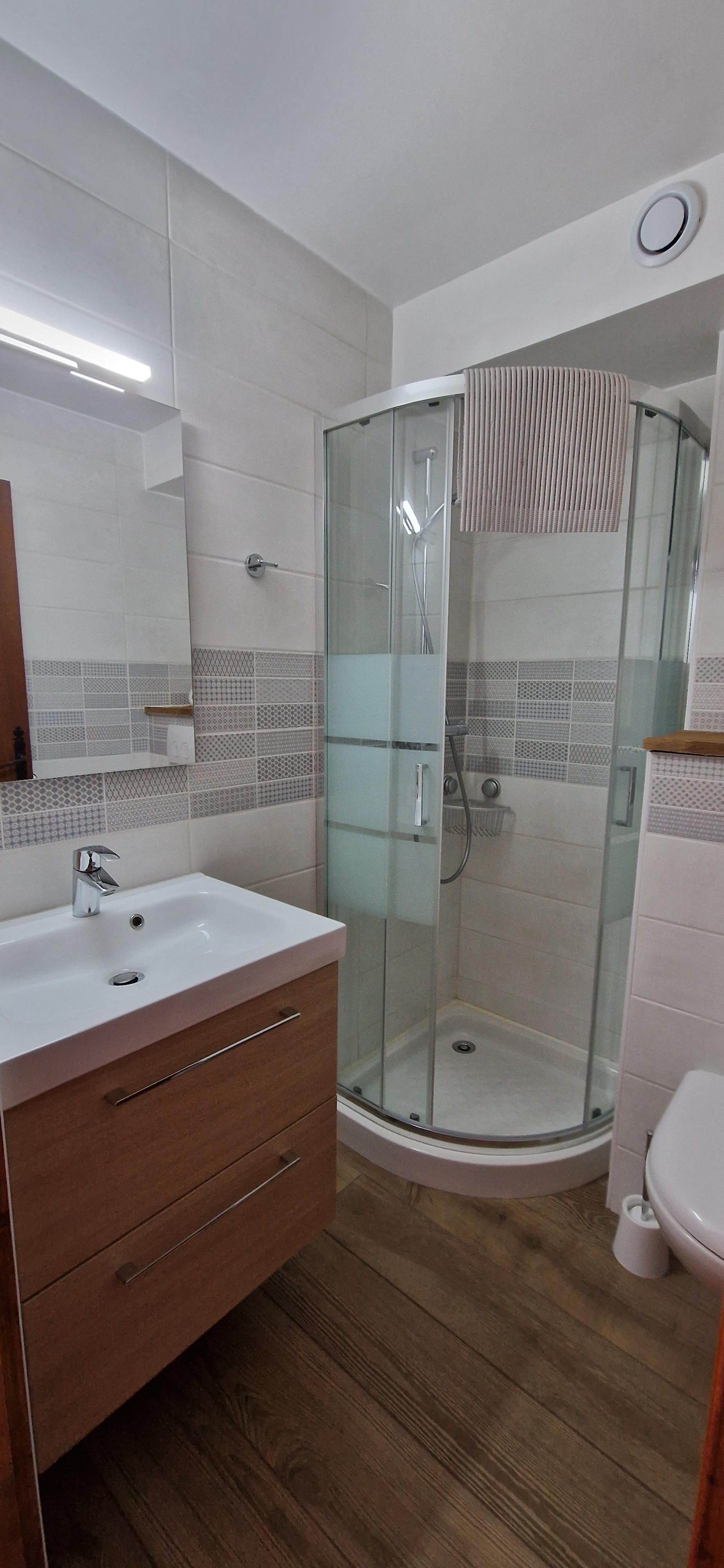 Salle d'eau (avec une douche) et WC à l'intérieur. Sèche cheveux.
