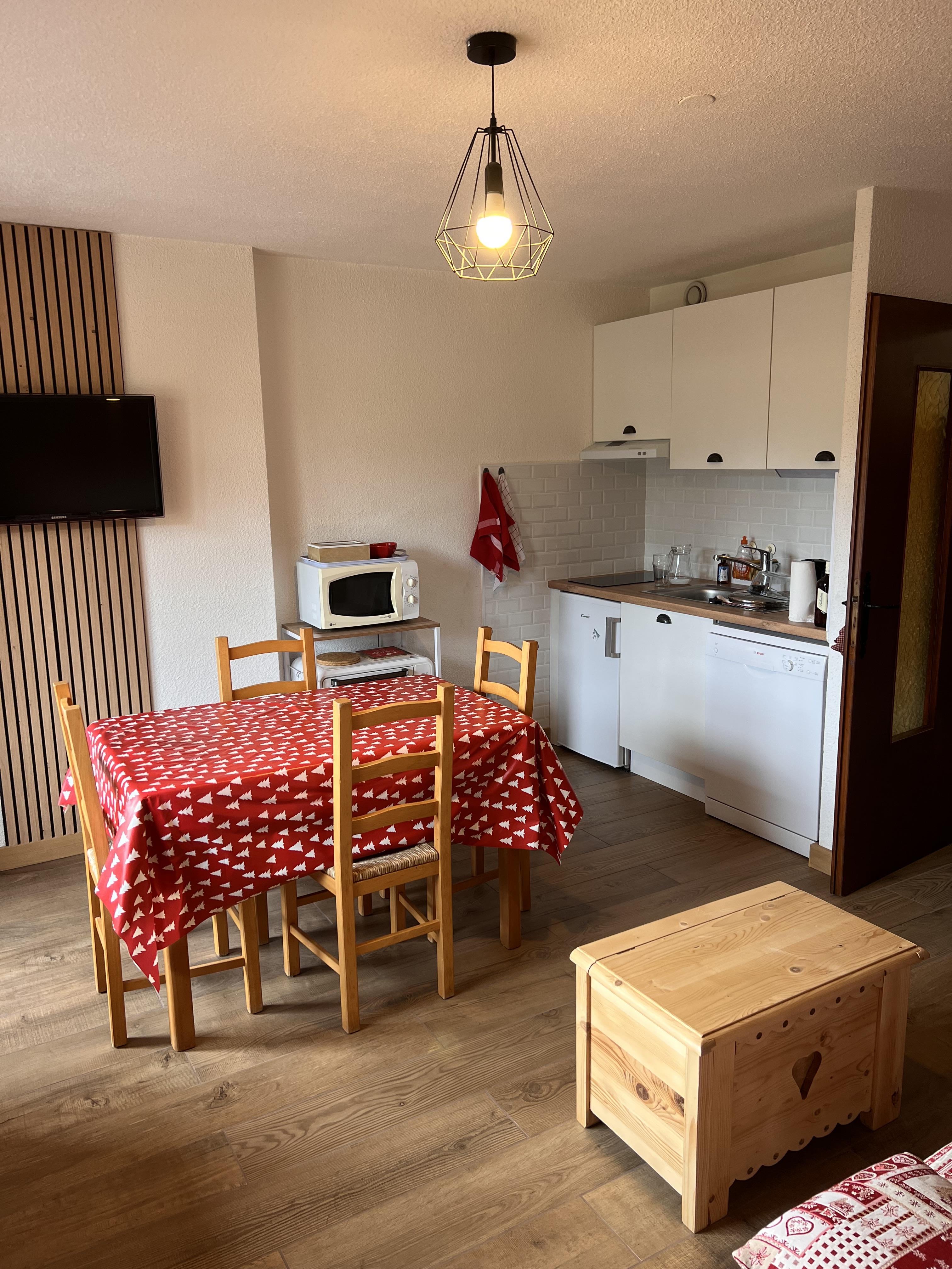Appartement classé 2 étoiles NN pour 6 personnes (possibilité de 2 couchages supplémentaires pour des enfants), décoré avec beaucoup de soin situé au rez de chaussée d'un chalet en vieux bois avec un accès direct sur les pistes.