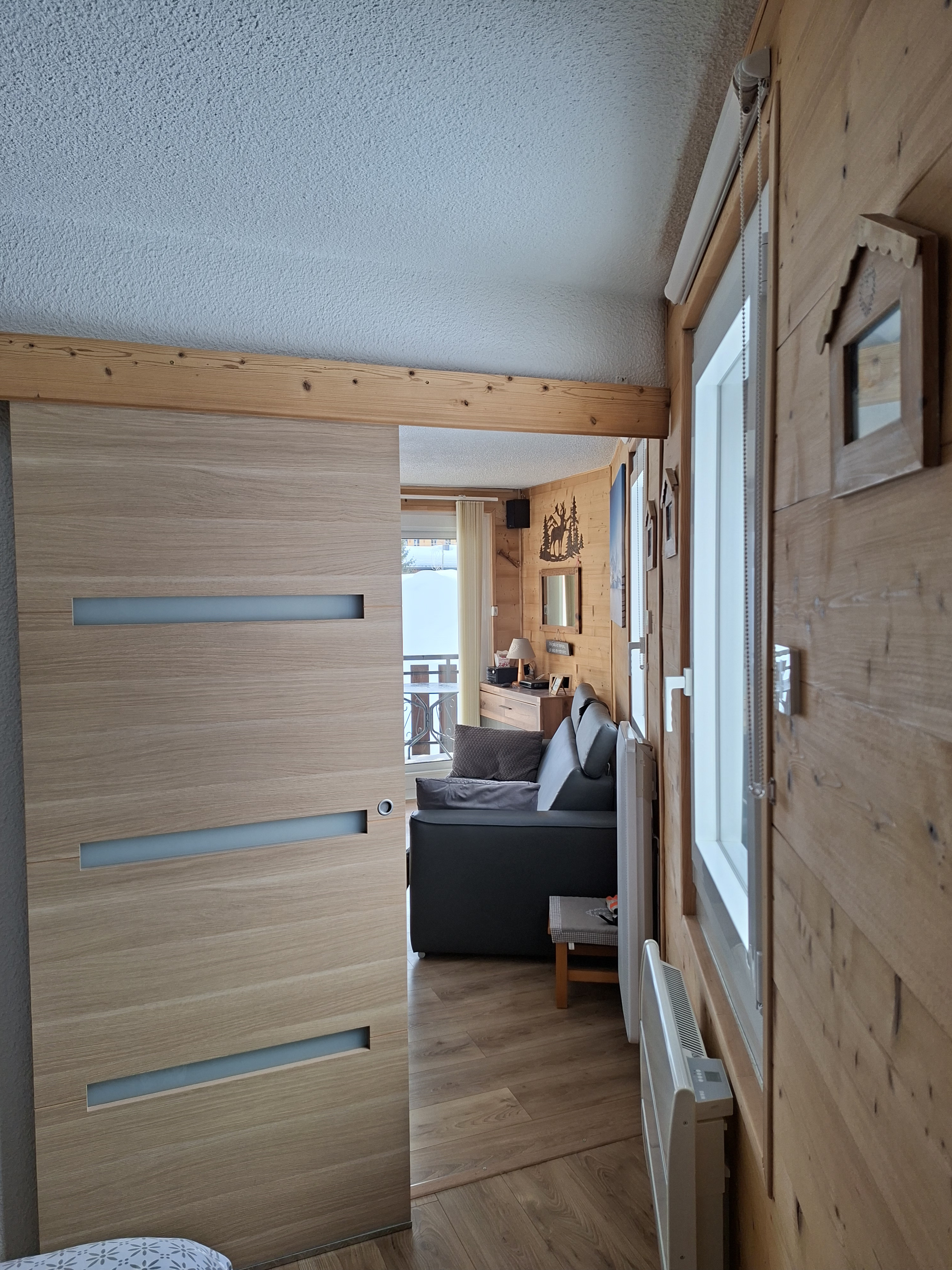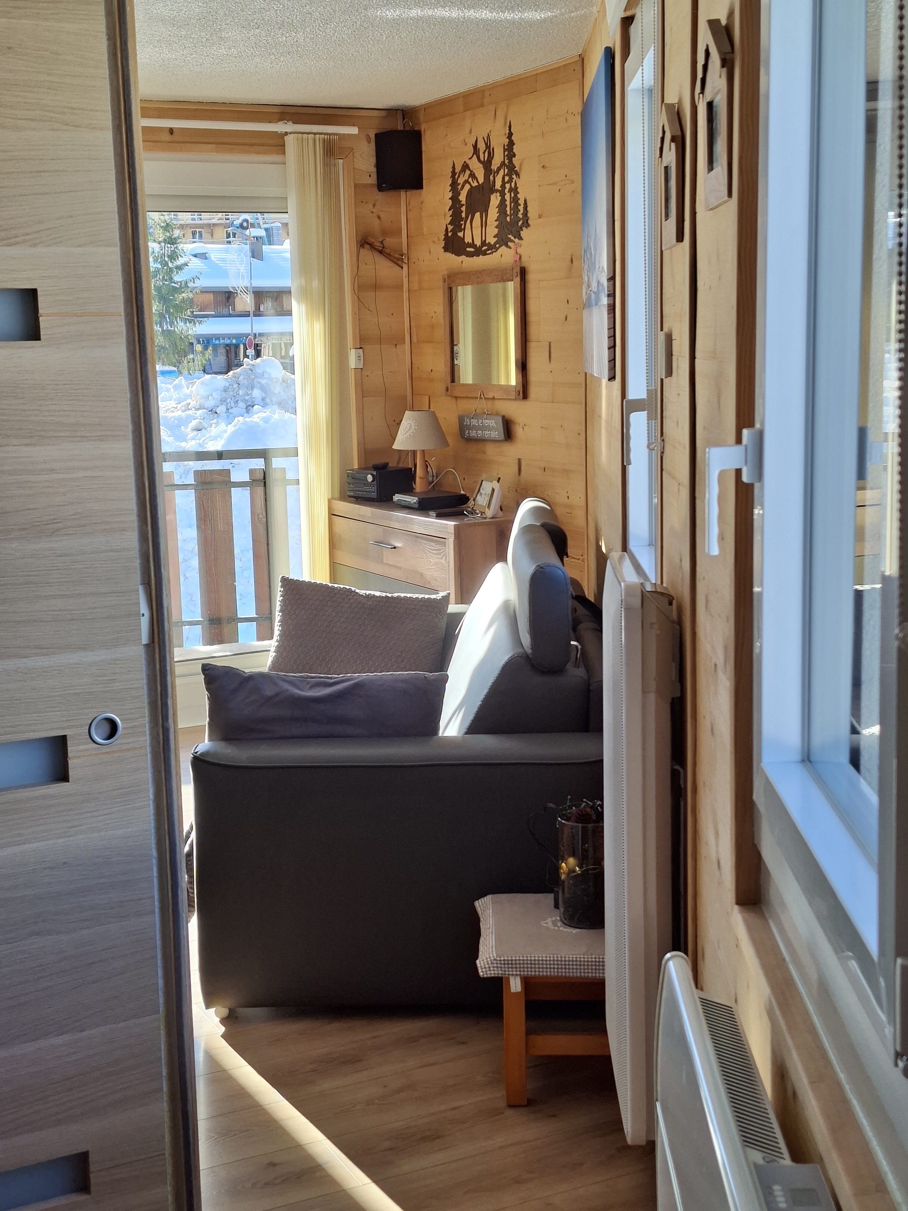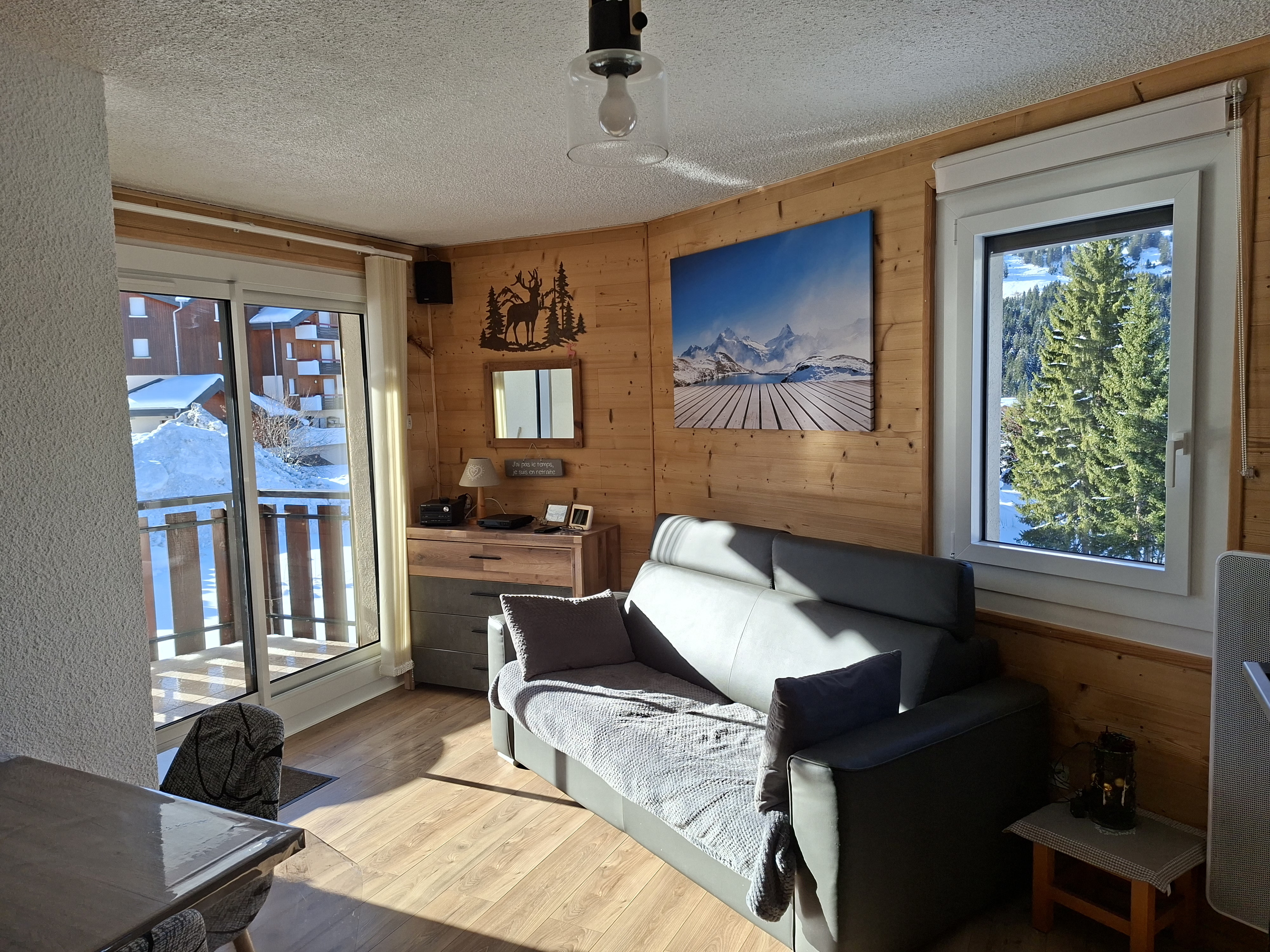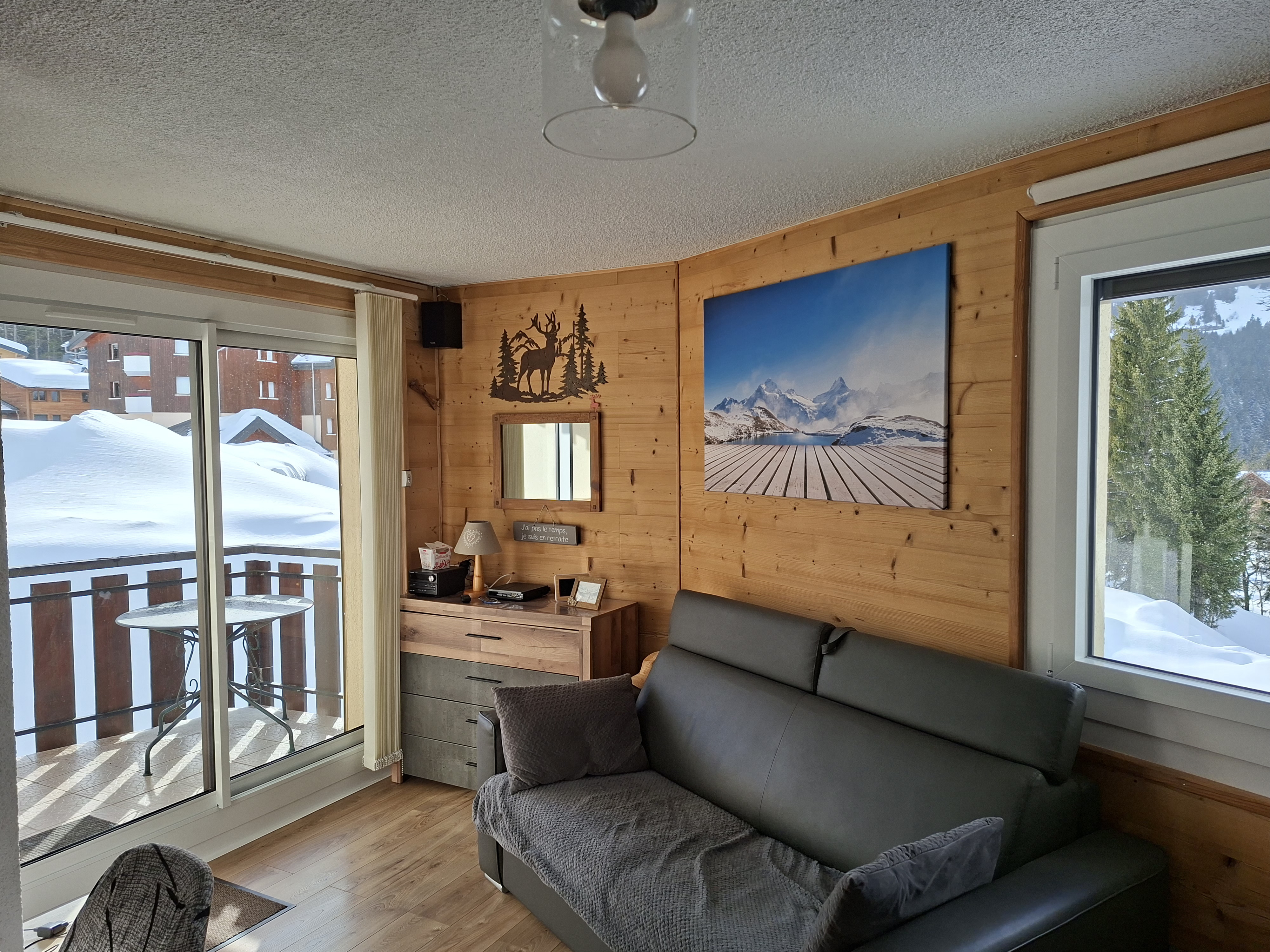Appartement classé 2 étoiles NN pour 6 personnes (possibilité de 2 couchages supplémentaires pour des enfants), décoré avec beaucoup de soin situé au rez de chaussée d'un chalet en vieux bois avec un accès direct sur les pistes.