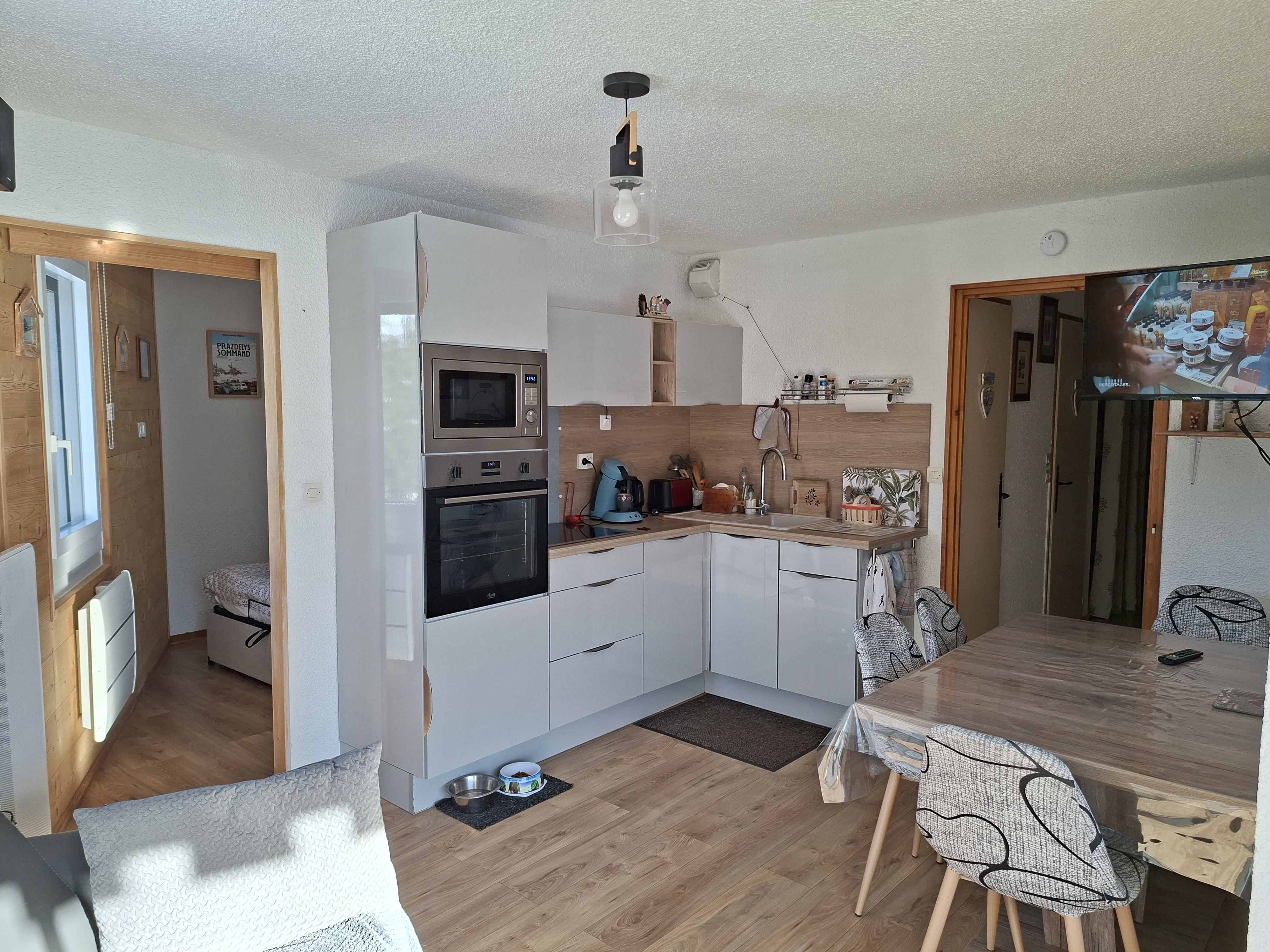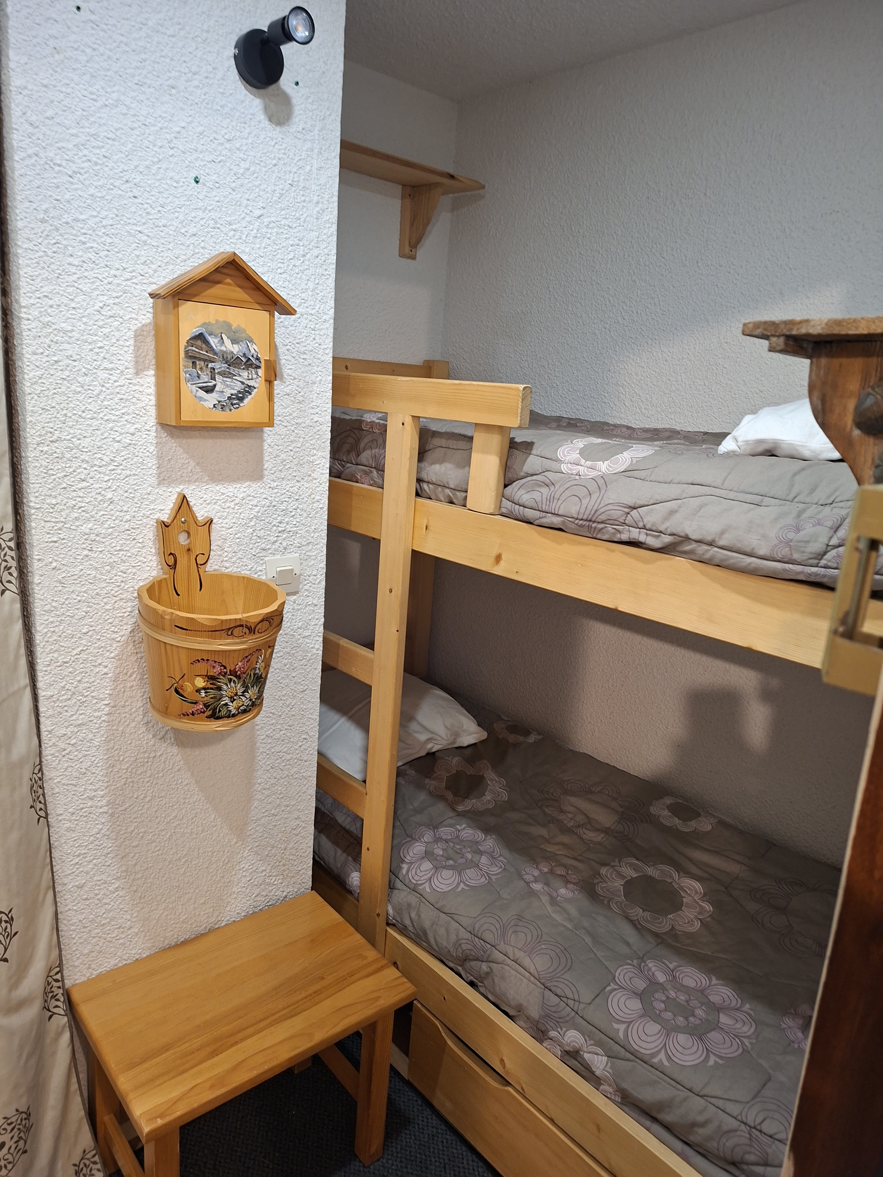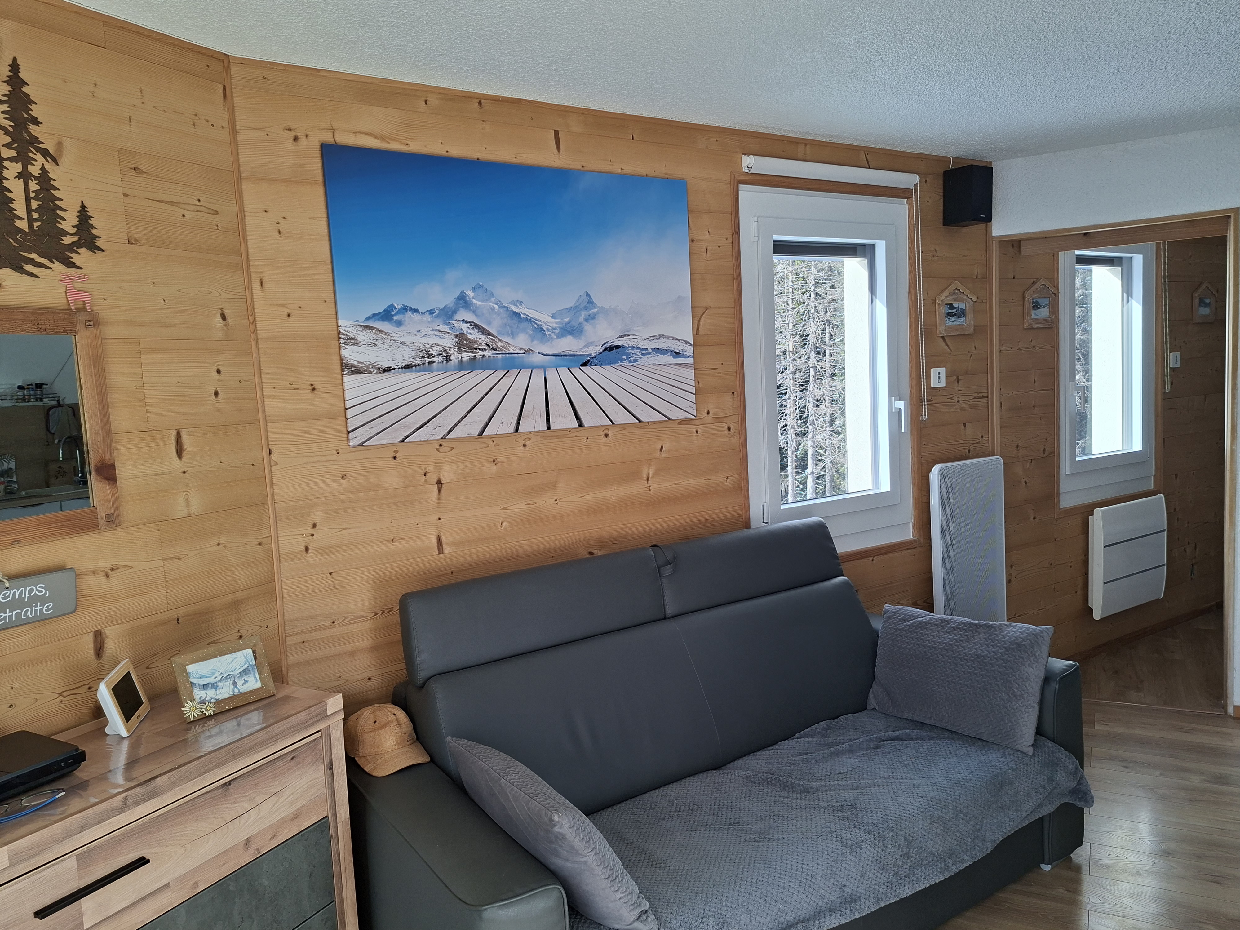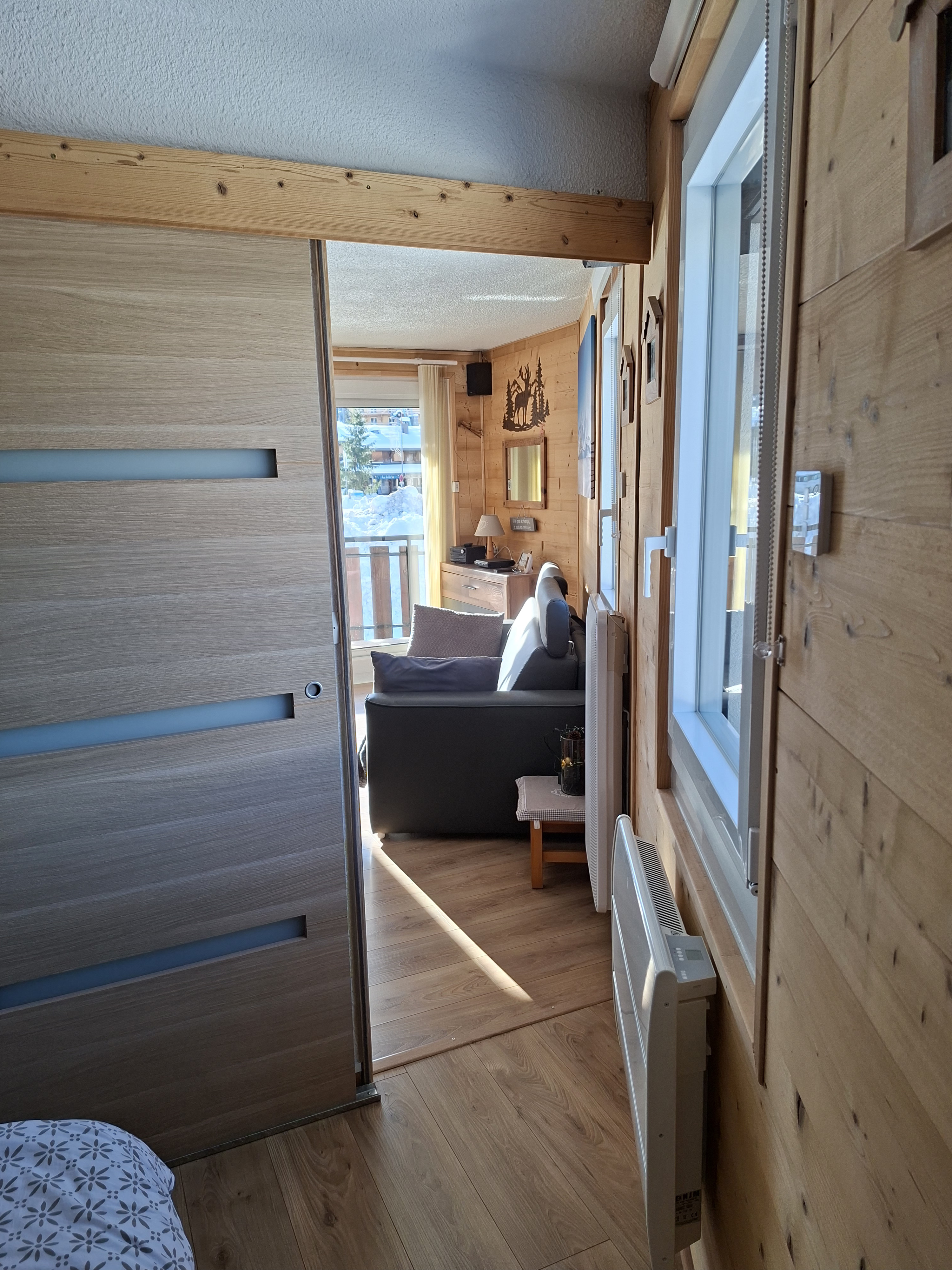 Appartement classé 2 étoiles NN pour 6 personnes (possibilité de 2 couchages supplémentaires pour des enfants), décoré avec beaucoup de soin situé au rez de chaussée d'un chalet en vieux bois avec un accès direct sur les pistes.