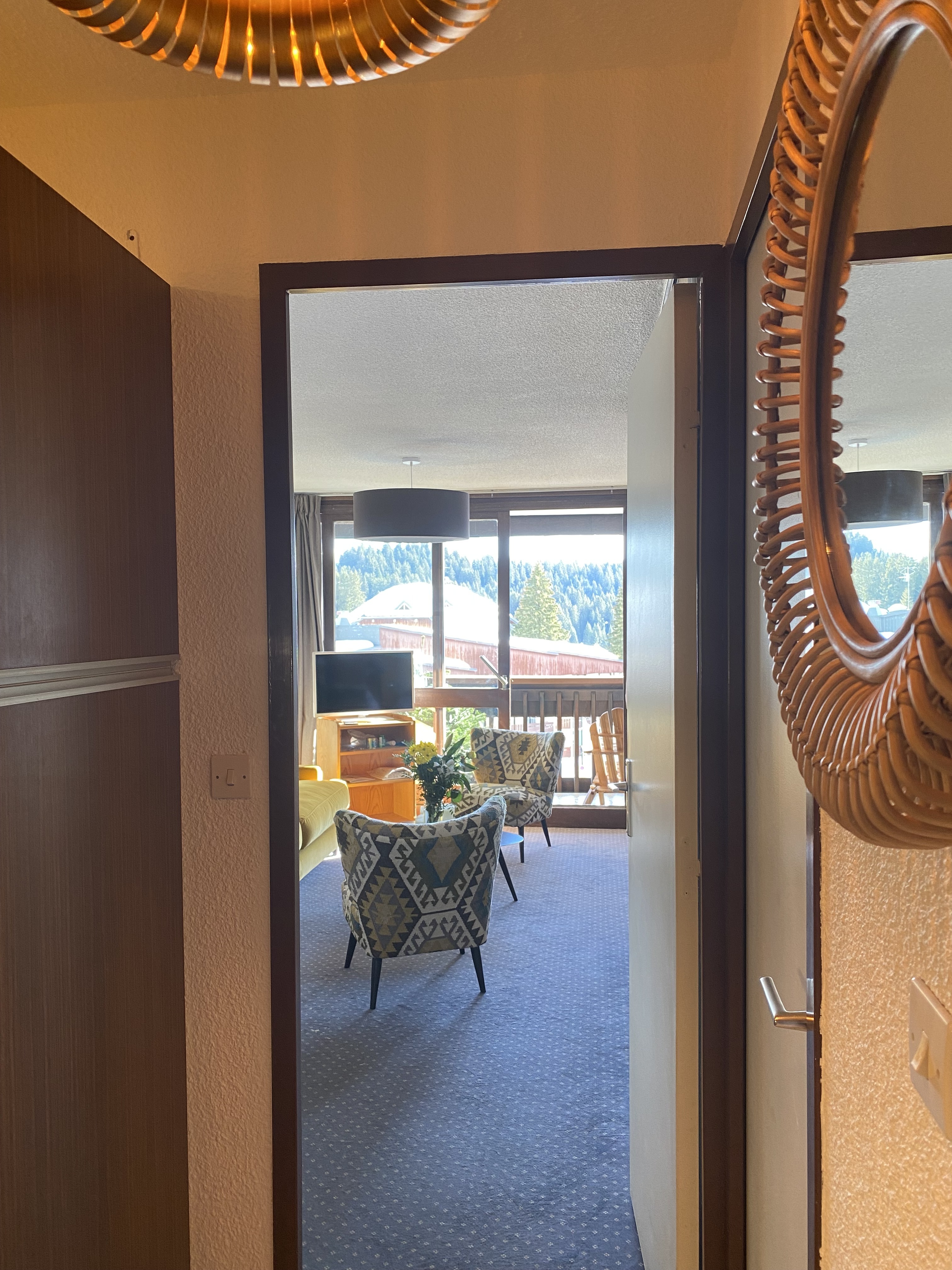 Appartement classé 2 étoiles NN pour 6 personnes (possibilité de 2 couchages supplémentaires pour des enfants), décoré avec beaucoup de soin situé au rez de chaussée d'un chalet en vieux bois avec un accès direct sur les pistes.