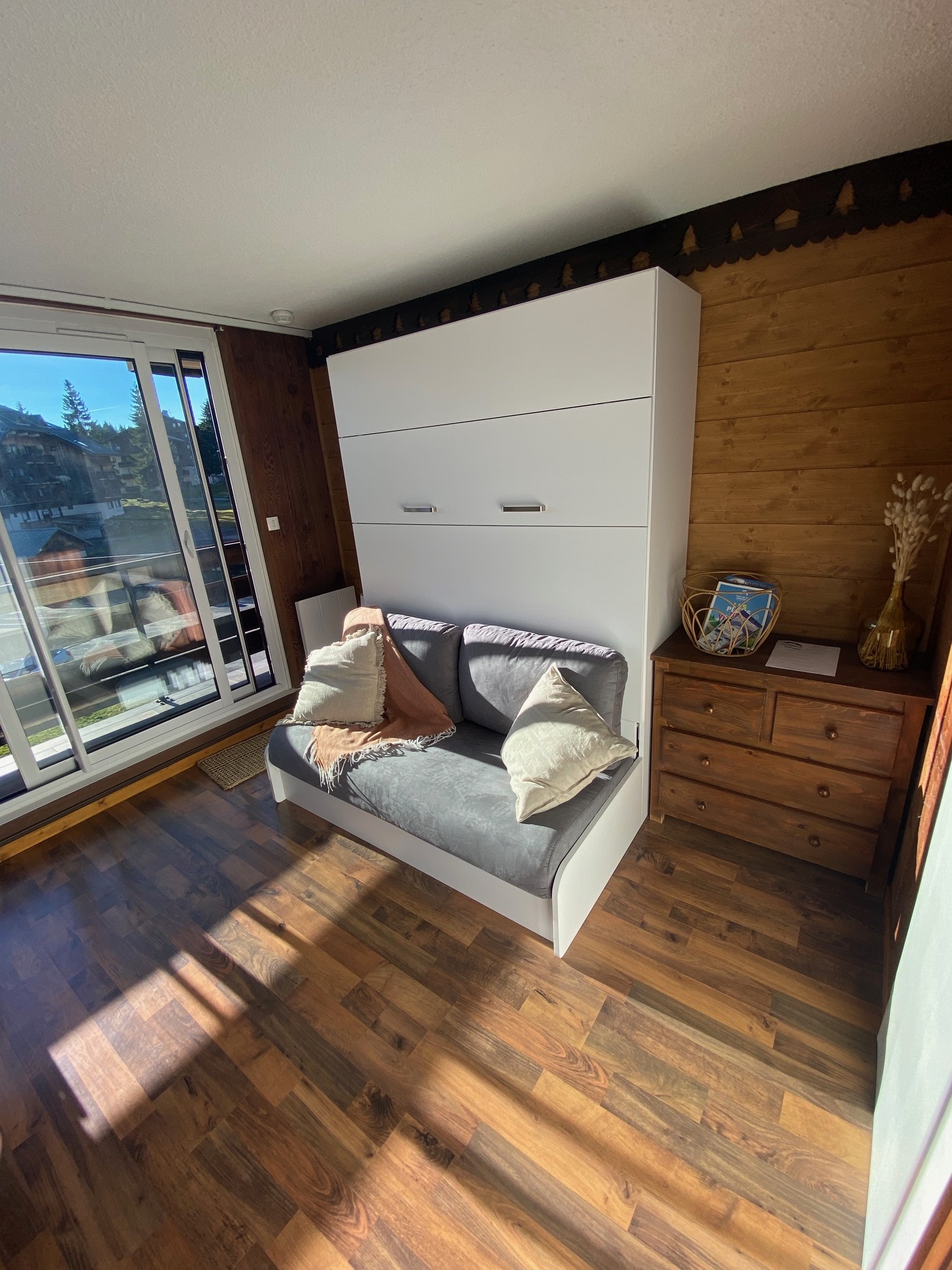 Bel appartement de plain-pied au Praz-de-Lys de 70 m2 dans chalet traditionnel rénové classé deux étoiles pour 6 personnes (possibilité d'accueillir 2 personnes supplémentaires). Terrasse privative.