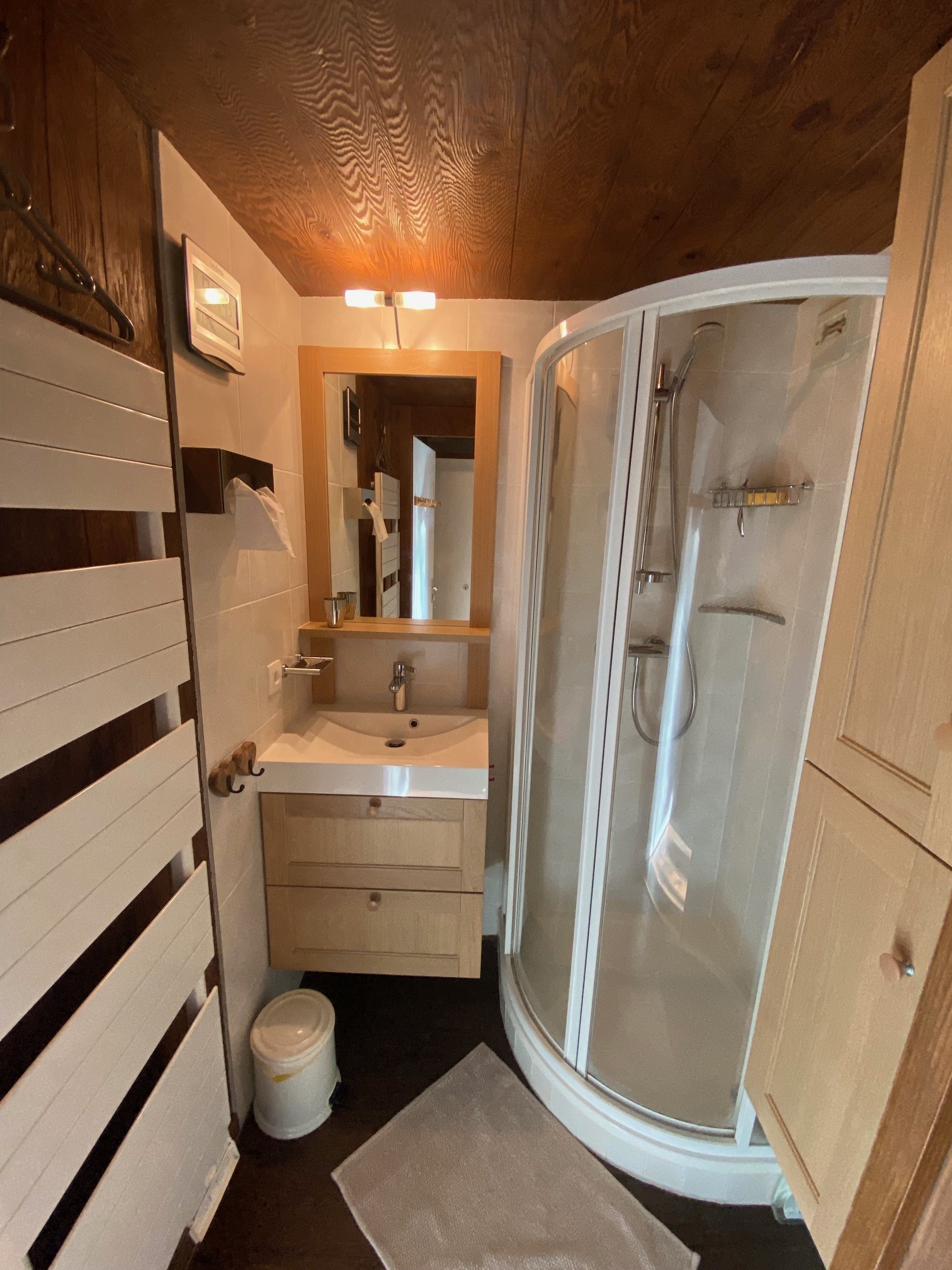 Salle de bains (avec douche), sèche cheveux et sèche serviette. WC avec accès indépendant.