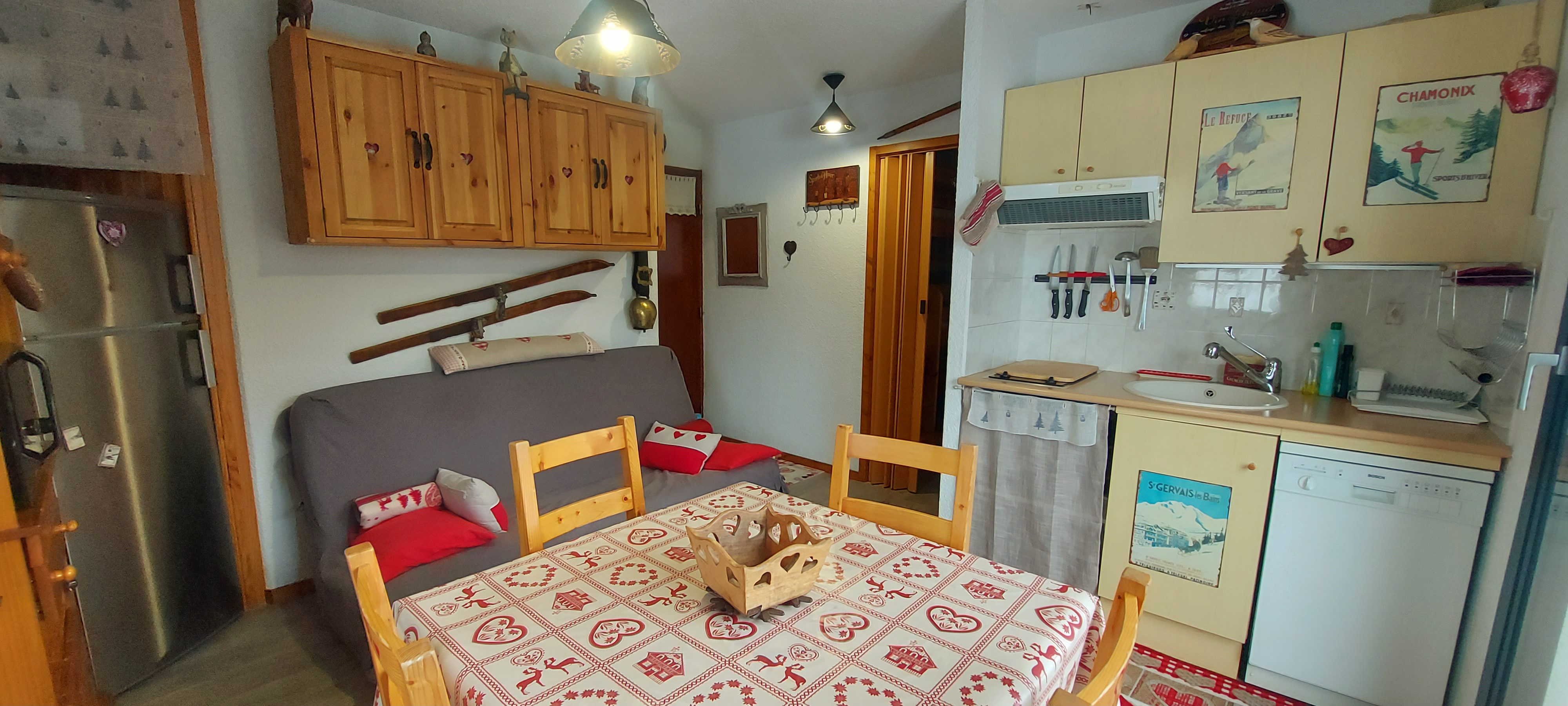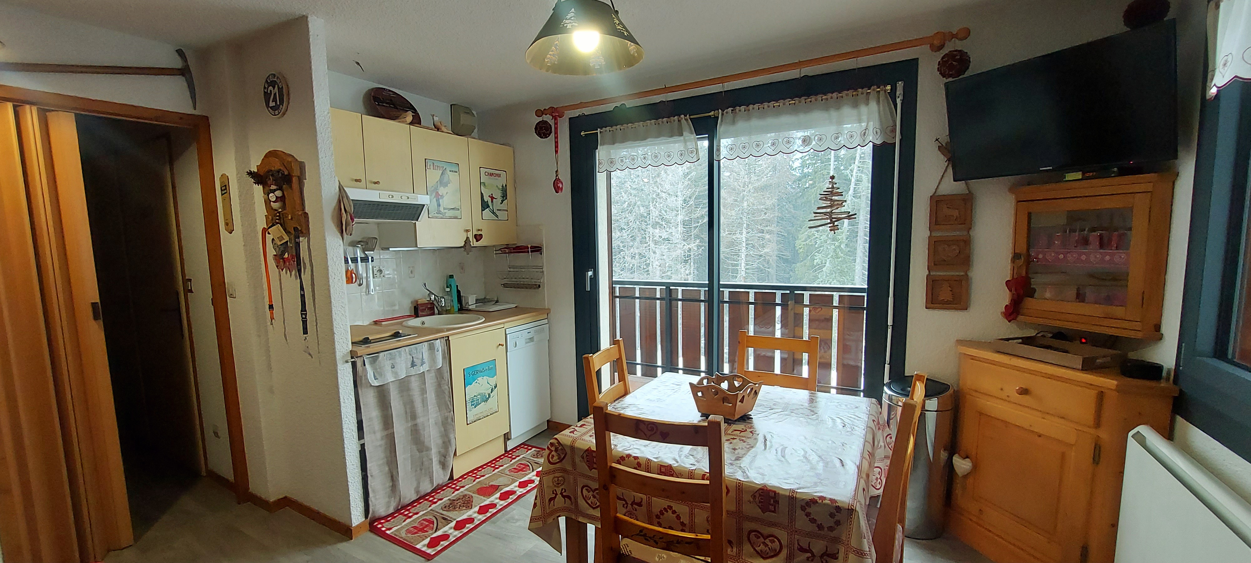 Appartement classé 2 étoiles NN pour 6 personnes (possibilité de 2 couchages supplémentaires pour des enfants), décoré avec beaucoup de soin situé au rez de chaussée d'un chalet en vieux bois avec un accès direct sur les pistes.