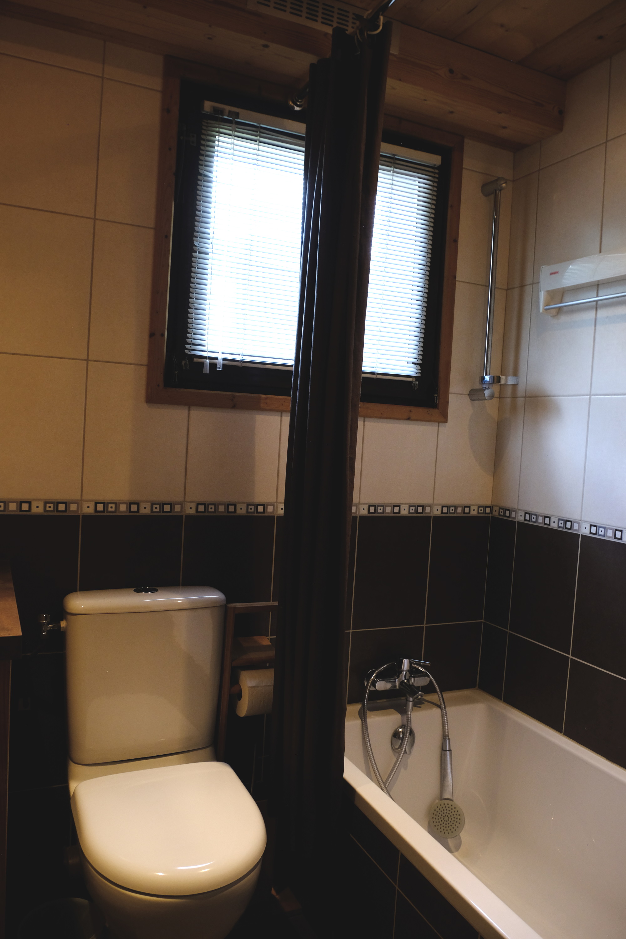 Salle de bains avec baignoire, WC dans salle de bains, Sèche cheveux.