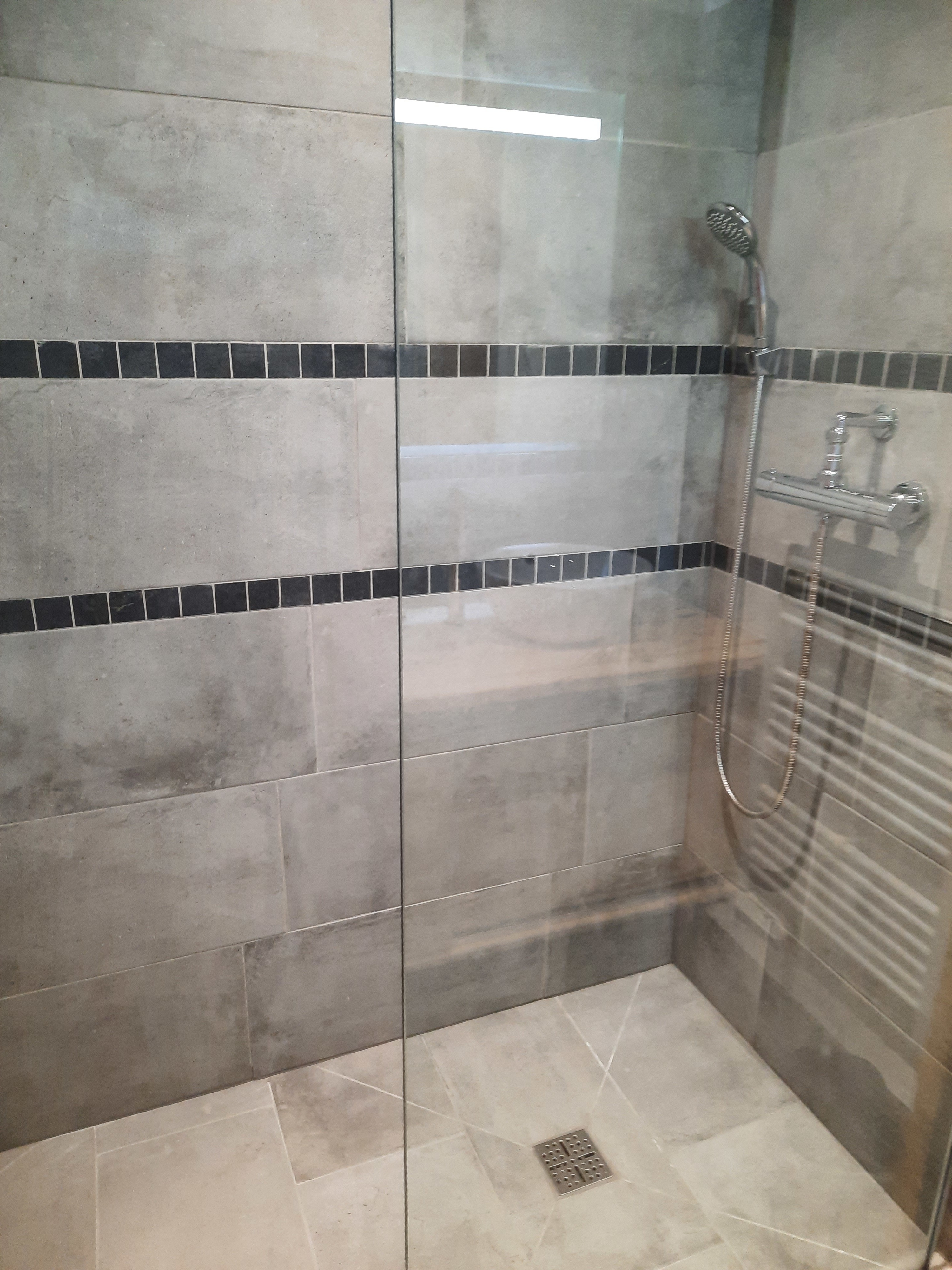 Salle d'eau avec sèche serviettes. WC séparé