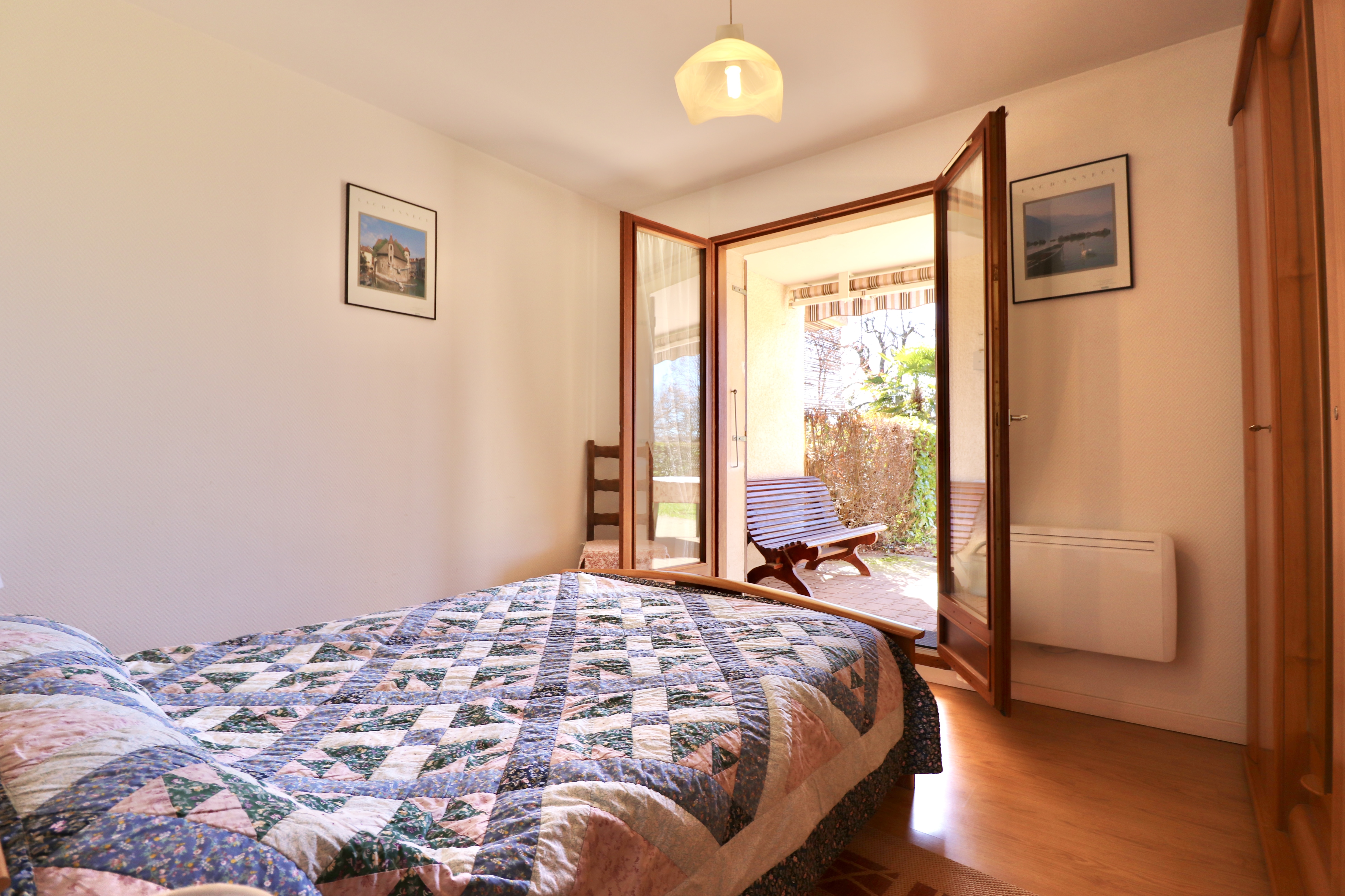 - 2 chambres : une avec lit double (140 cm) et armoire, avec accès direct à la terrasse, la seconde avec lit double (140 cm) + lit simple (90 cm)
