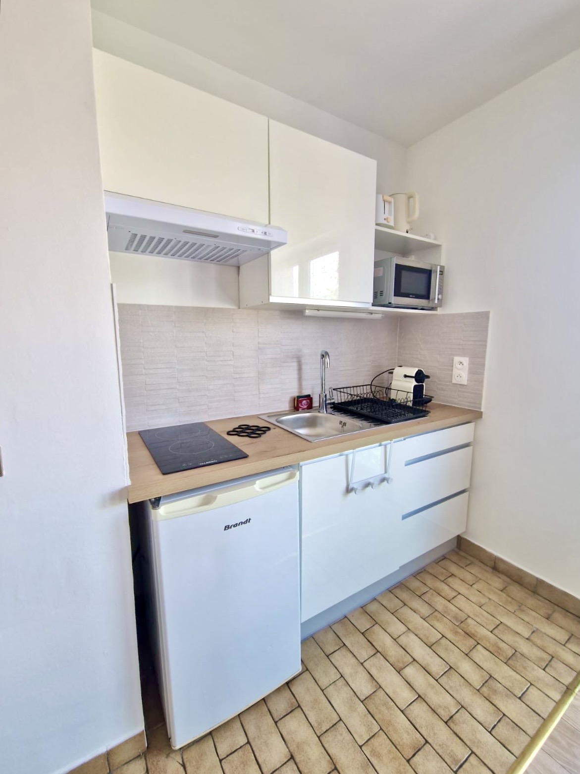 EQUIPEMENTS : réfrigérateur ; plaque de cuisson ; micro-onde ; cafetière Nespresso ; TV ; WIFI