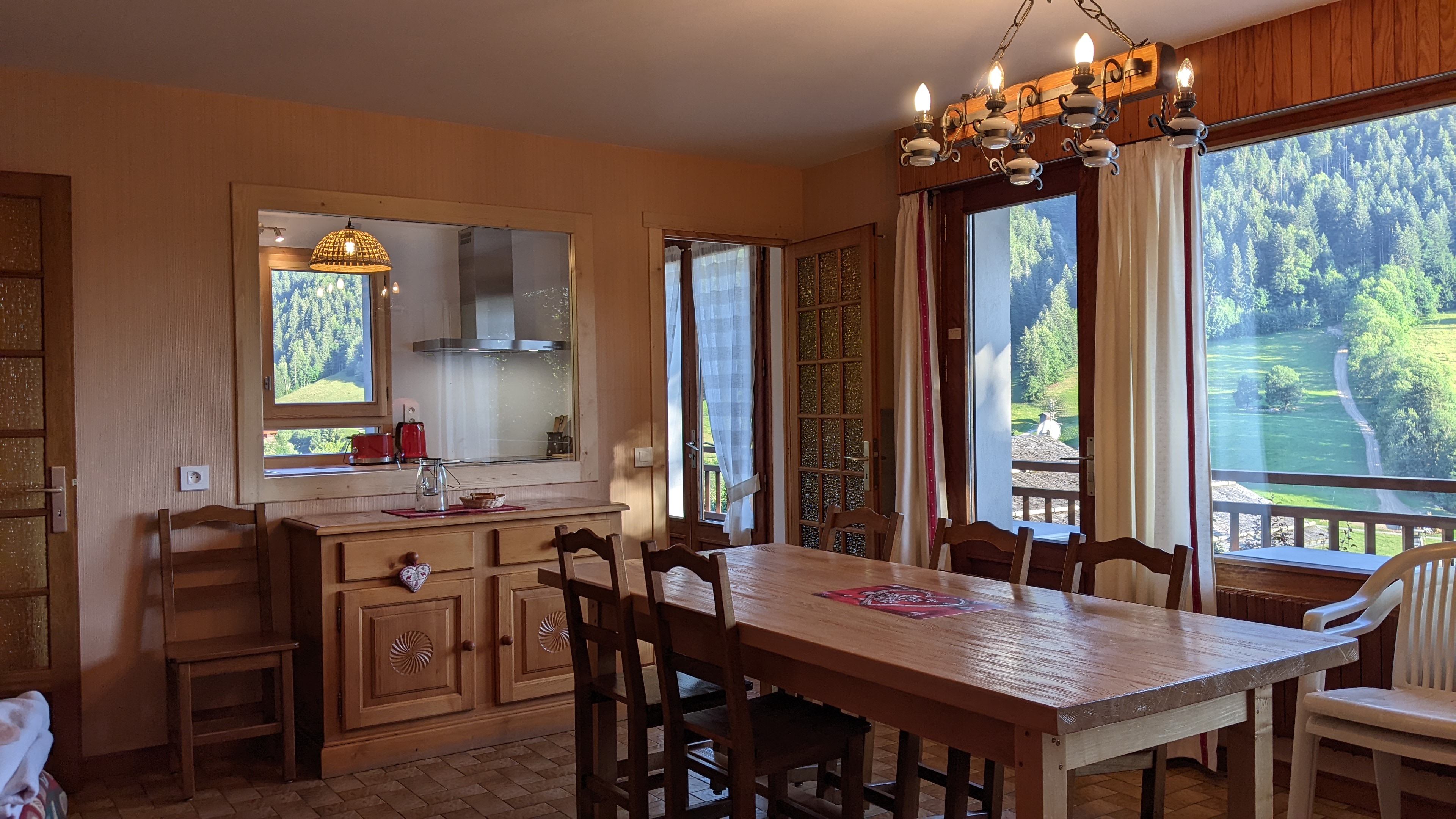 Appartement de 42m2 pour 5 personnes au 2ème étage d'un chalet individuel. Vue dégagée sur les montagnes environnantes.