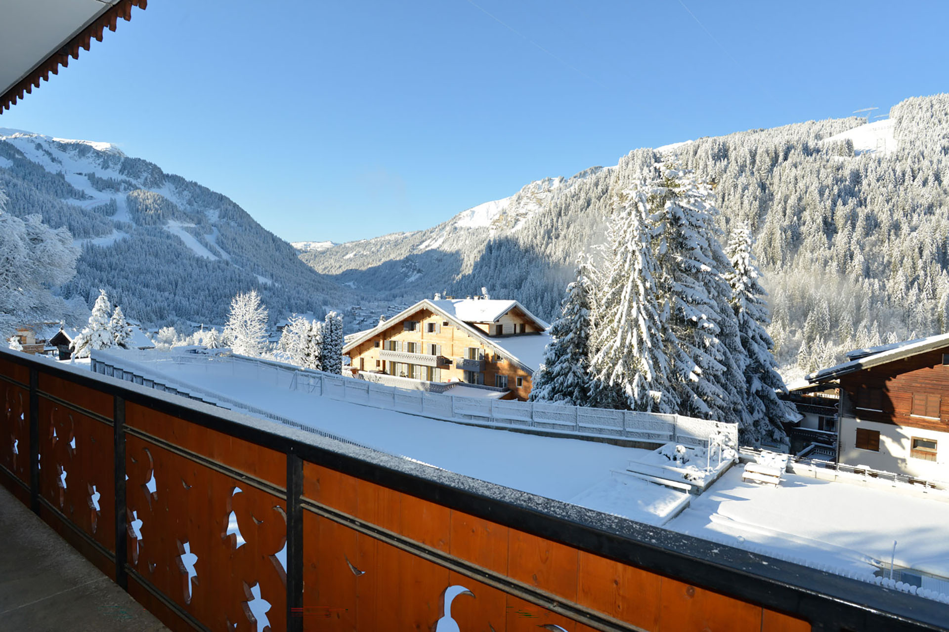 Au pied des pistes de Super-Châtel, 3 pièces spacieux idéal pour 4/6 personnes au 2ème étage d'un chalet traditionnel. Grand balcon-terrasse avec magnifique vue sur la vallée.