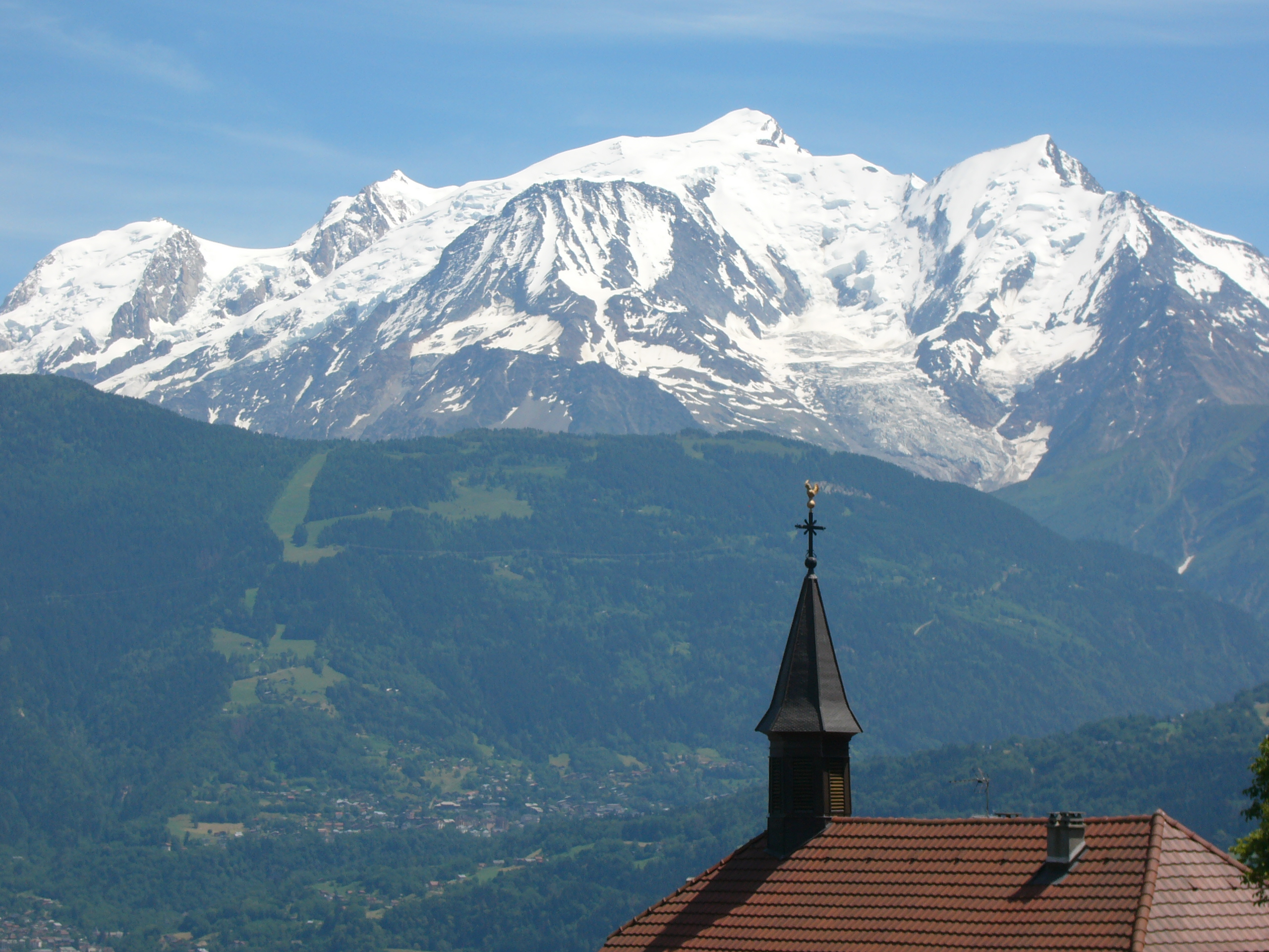 Appartement vue Mont-Blanc pour six personnes situé à 5 minutes à pied de la gare, 10 minutes de marche du centre ville, et 20minutes en voiture des pistes de ski de Combloux.