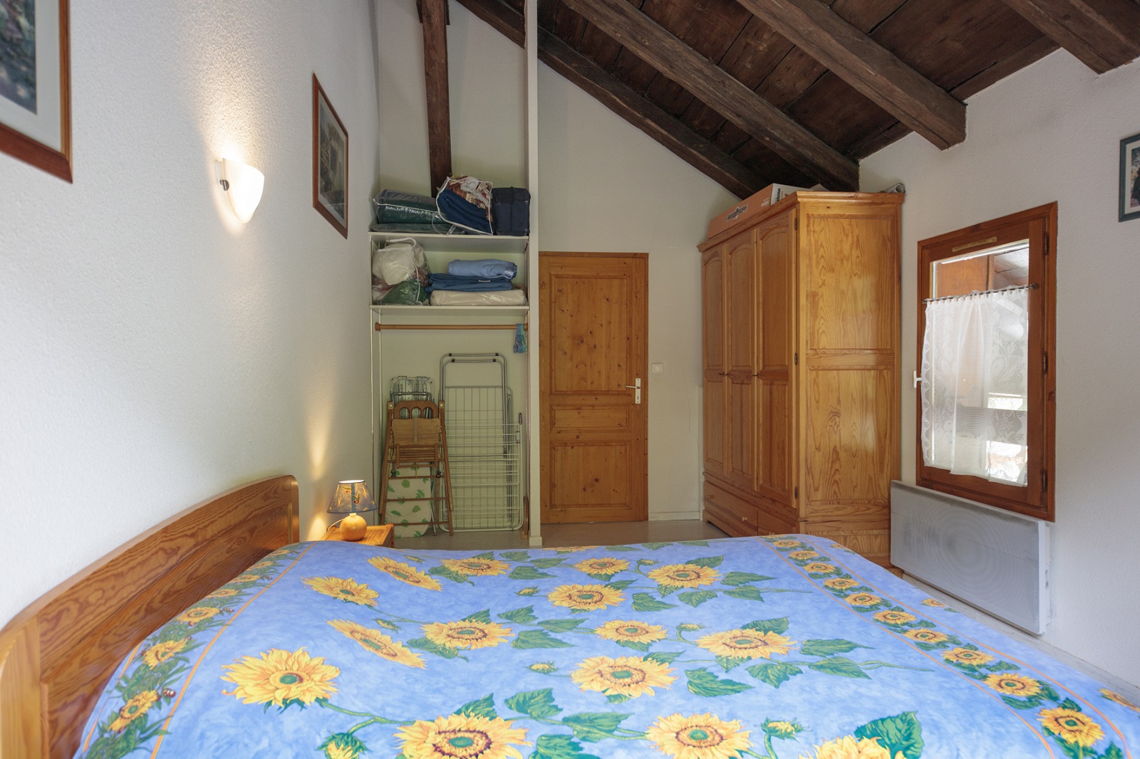 Chambre n°1 : 1 lit double (160 x 200) et 1 lit-tiroir, 1 lit bébé, 1 chaise haute pour jeune enfant.