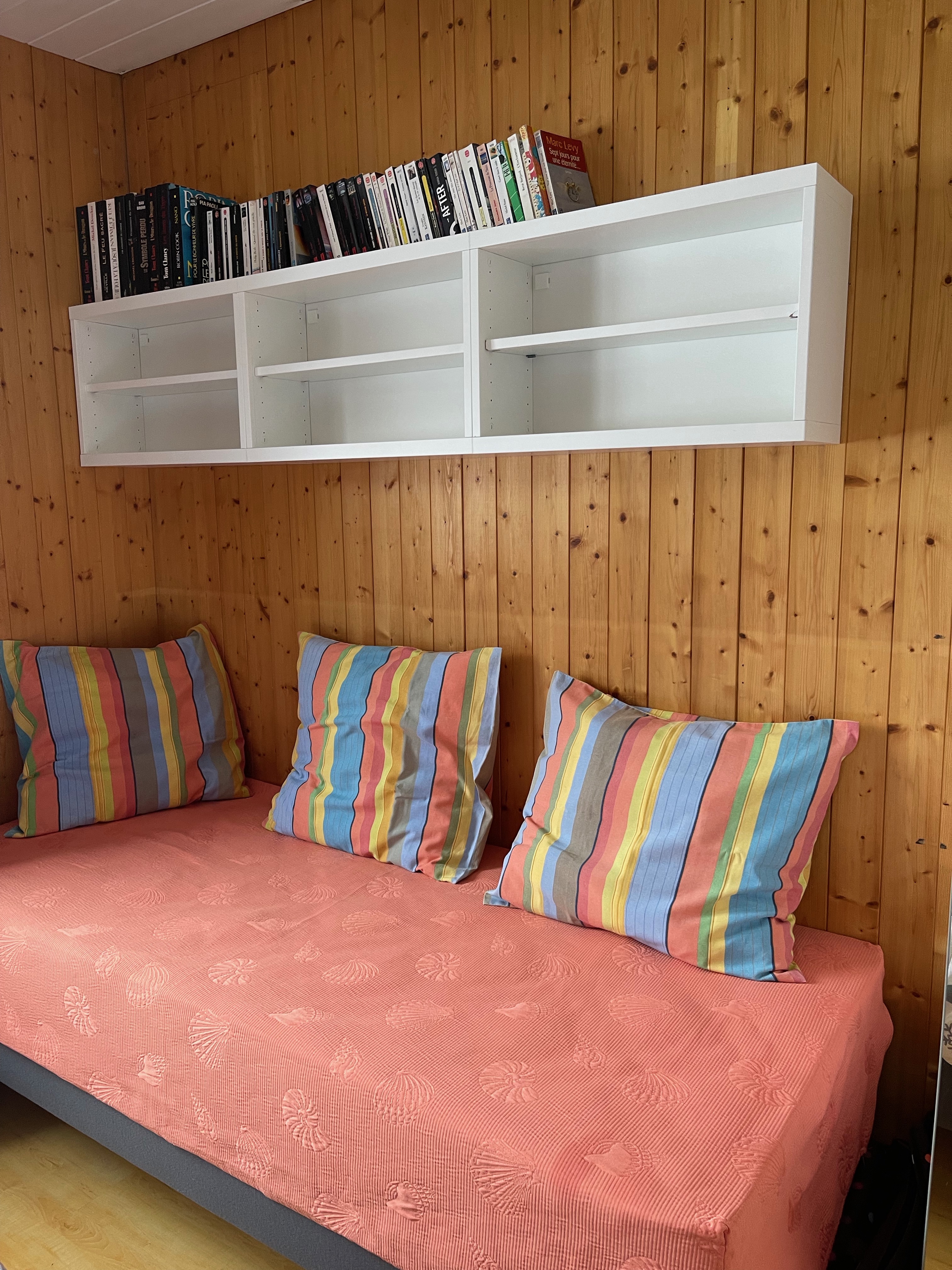 3 lits de 80 x 190 cm, possibilité de jumeler 2 lits pour former un lit de 160 cm. Prévoir les housses de couette correspondantes.