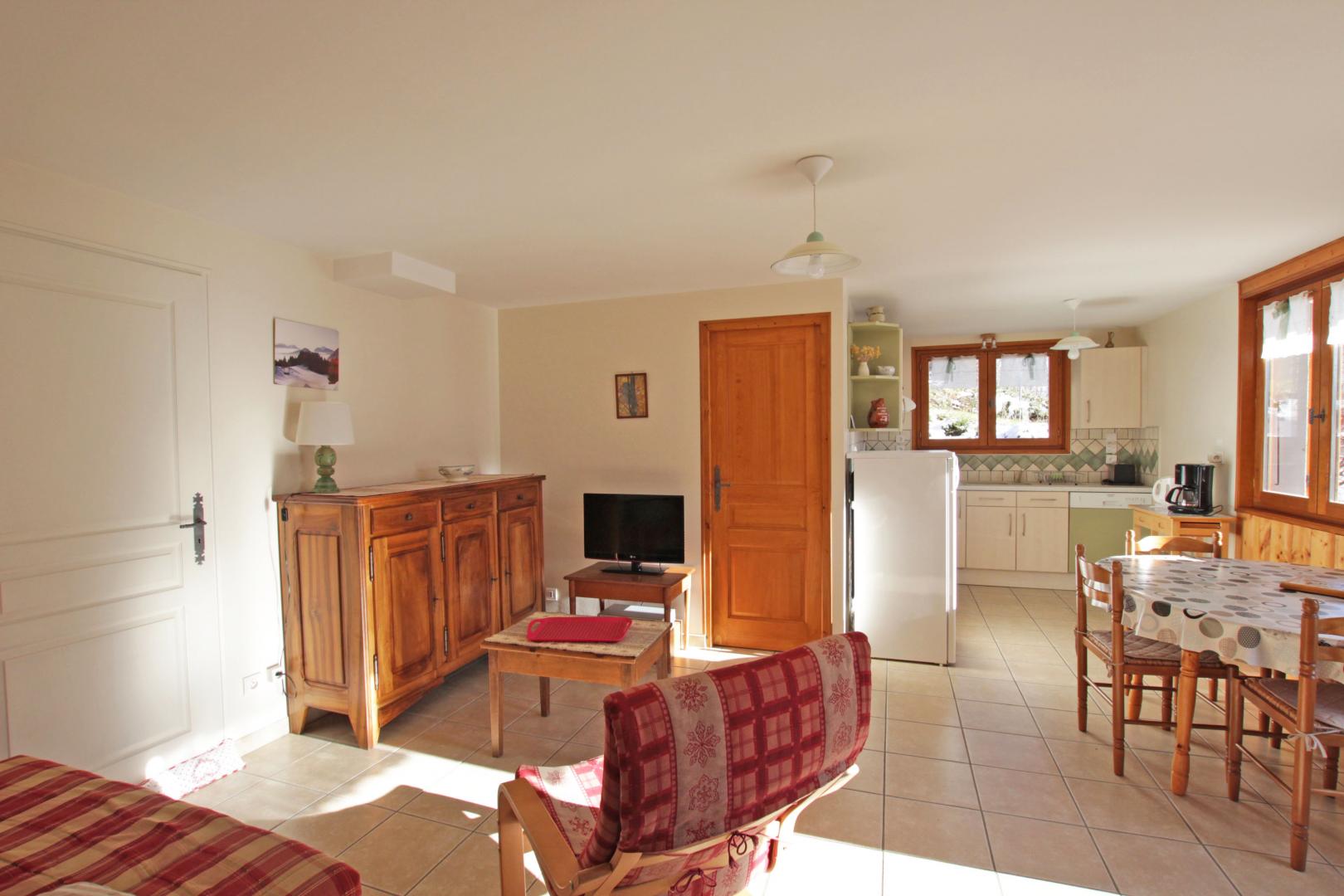 A la croisée des domaines skiables du Grand Massif et des Portes du Soleil, gite de 45m2 aménagé de plain pied dans une maison comprenant également 4 autres gites.