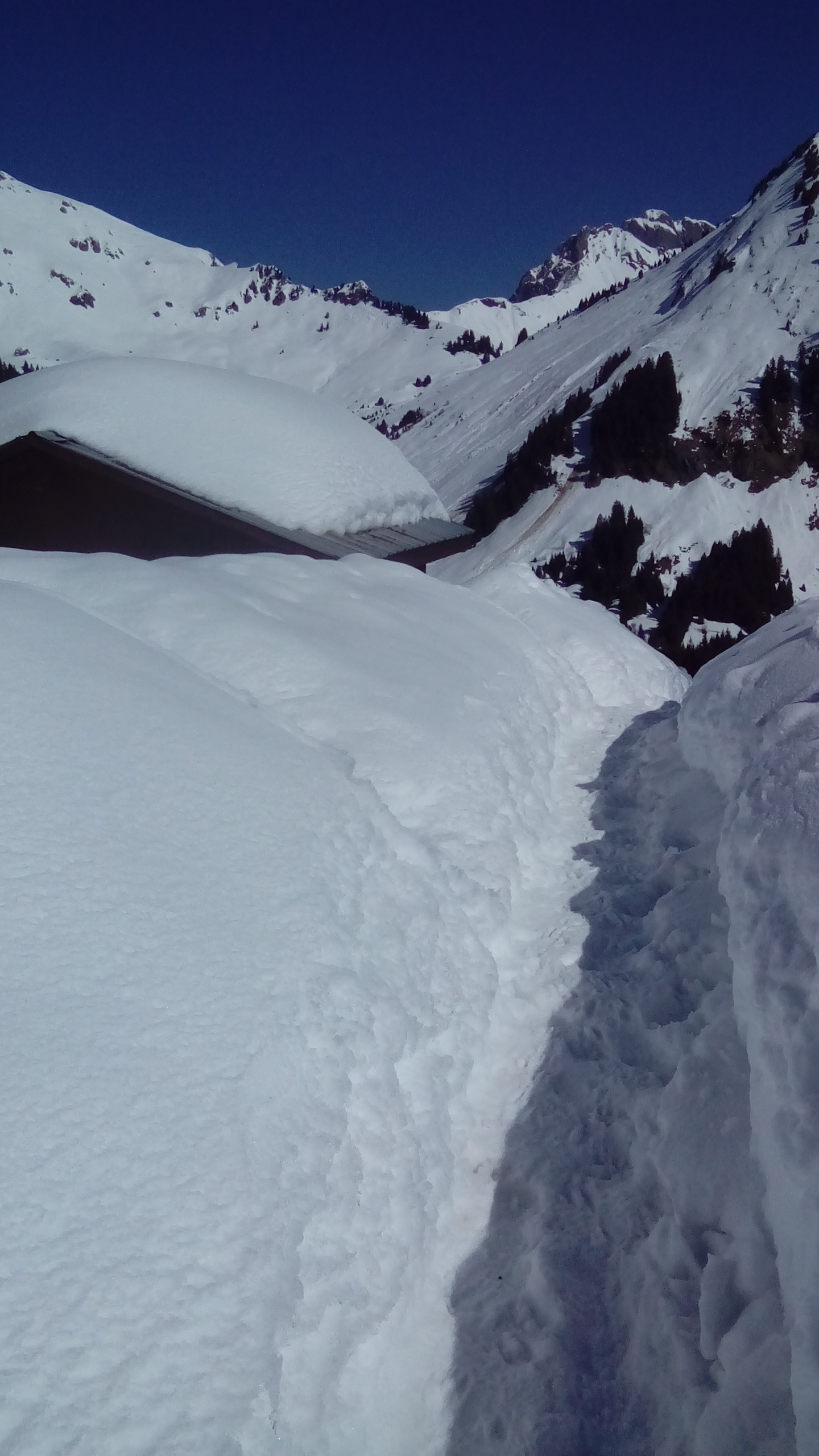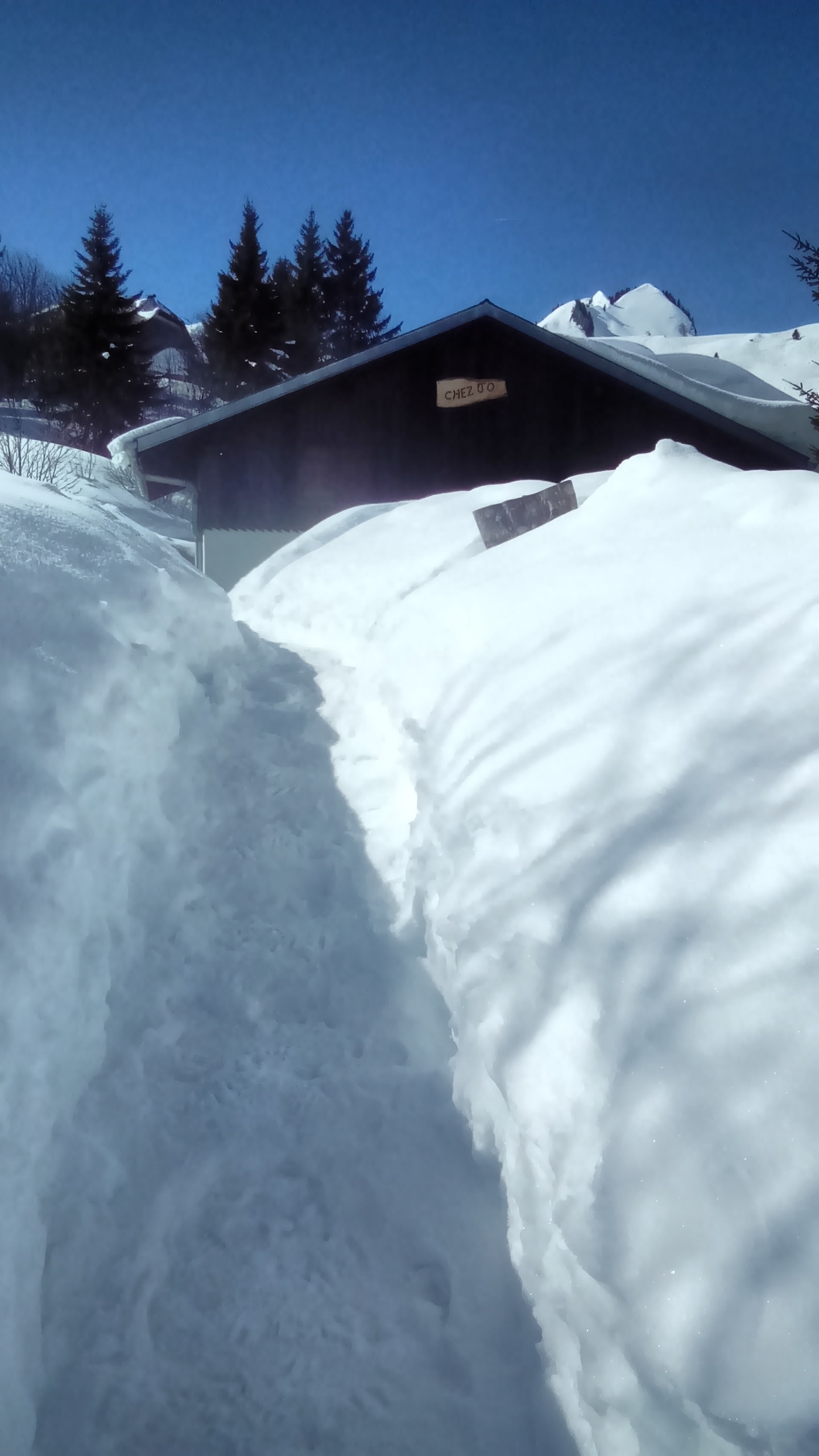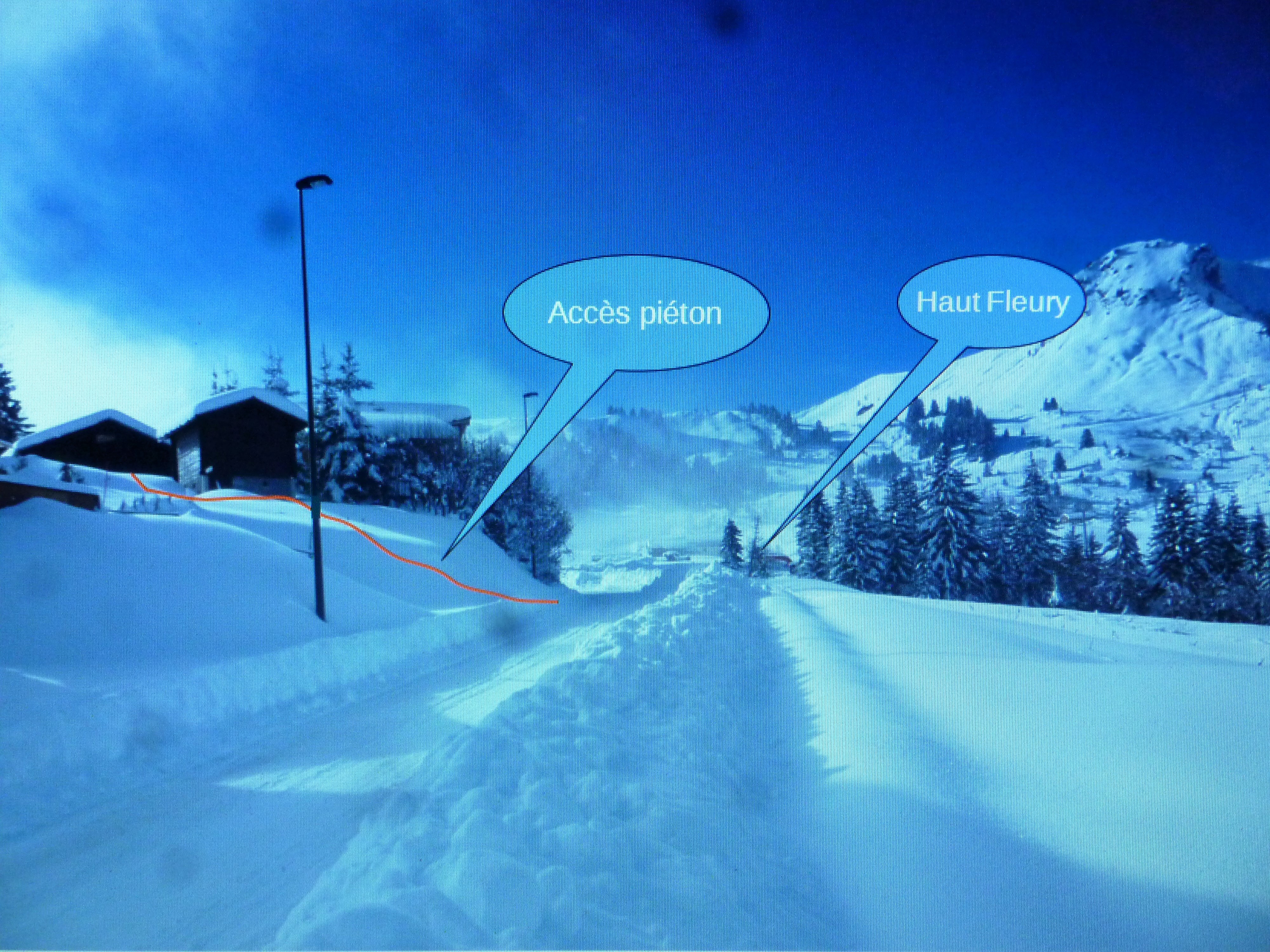 L'accès au chalet depuis la route en hiver se fait via un petit chemin tracé par les propriétaires, non accessible aux personnes à mobilité réduite.