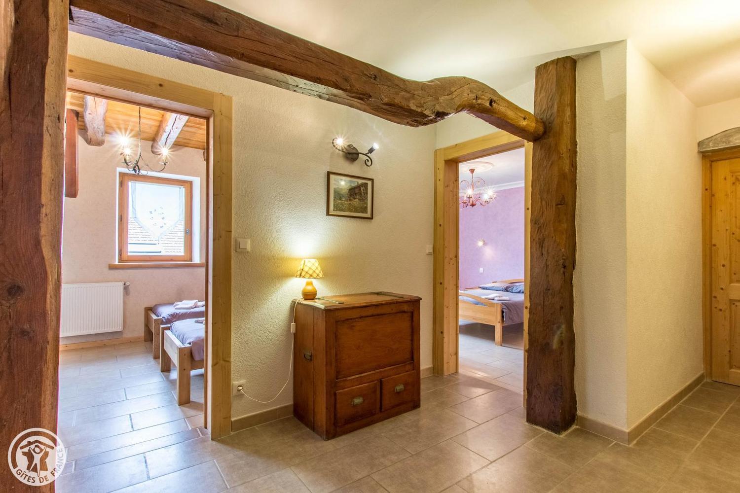 Gîte de France 3 épis, 4 étoiles situé à 100 du centre du village : 90m²- 3 pièces - 2chambres - 6 couchages. Literie, mobilier et décors de qualité. Gite équipé pour recevoir les bébés. Situé au rez-de-chaussée d'une ancienne ferme totalement rénovée.