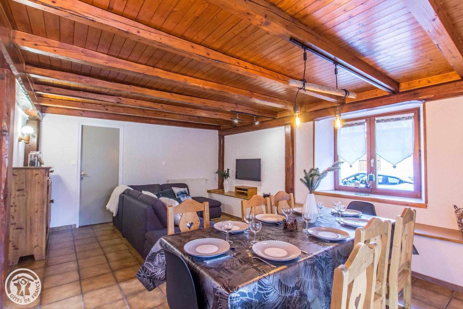 Gîte de France, 3 épis 3 étoiles situé à 100 mètres du centre de la station village . 90m², 4 pièces, 3 chambres, 7couchagess, équipé pour bébés. Literie, mobilier et décors de qualité.