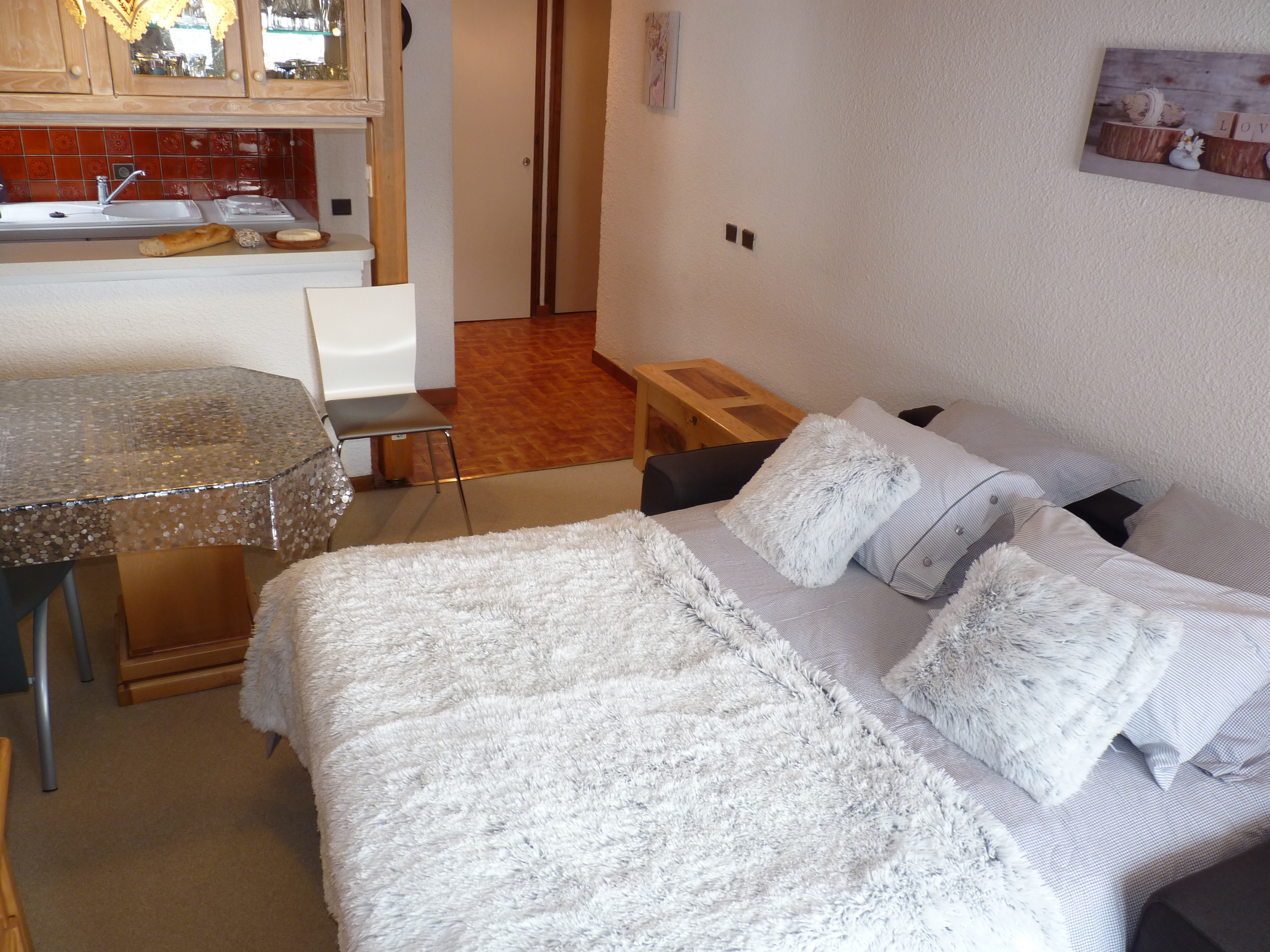 Studio de 22m2, de style montagnard, pouvant accueillir 3 personnes. Le plus : balcon orienté plein sud avec une vue imprenable sur les montagnes.