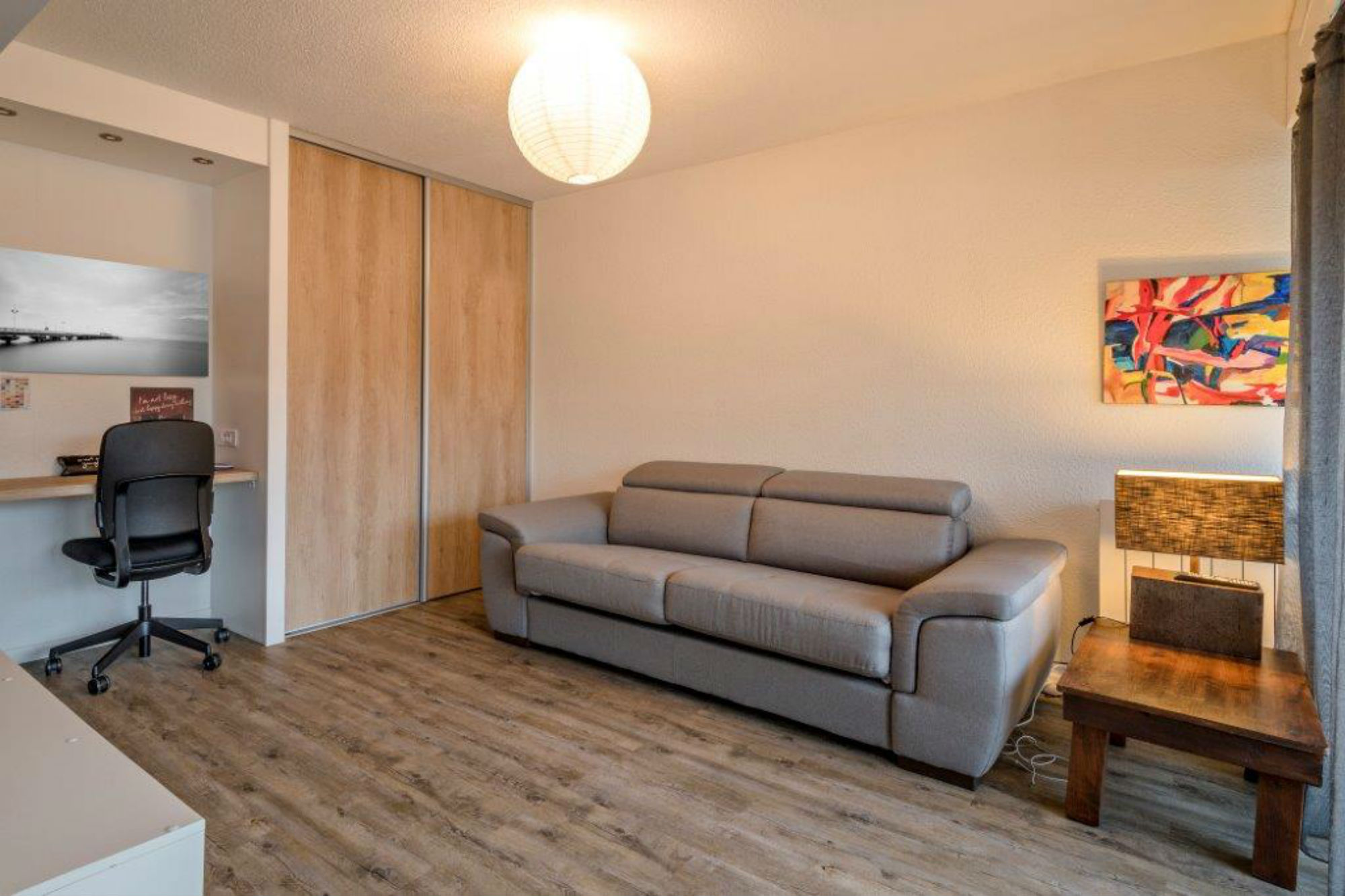 Boite à clés pour arrivées et départs à toute heure. Vous apprécierez ce studio pour son environnement calme, sa fonctionnalité et son balcon exposé Sud. Il offre un espace cuisine équipée avec une table, une pièce de vie agréable avec placards et bureau.