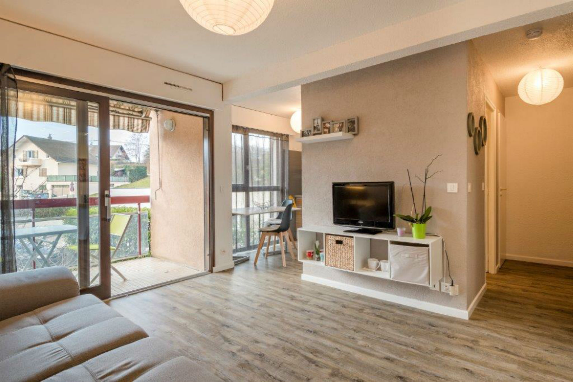 Très lumineux T2 à Thonon les Bains, vue lac et décoré avec soins. Résidence piétonne neuve, à 250m de la plage et du parc de Corzent .