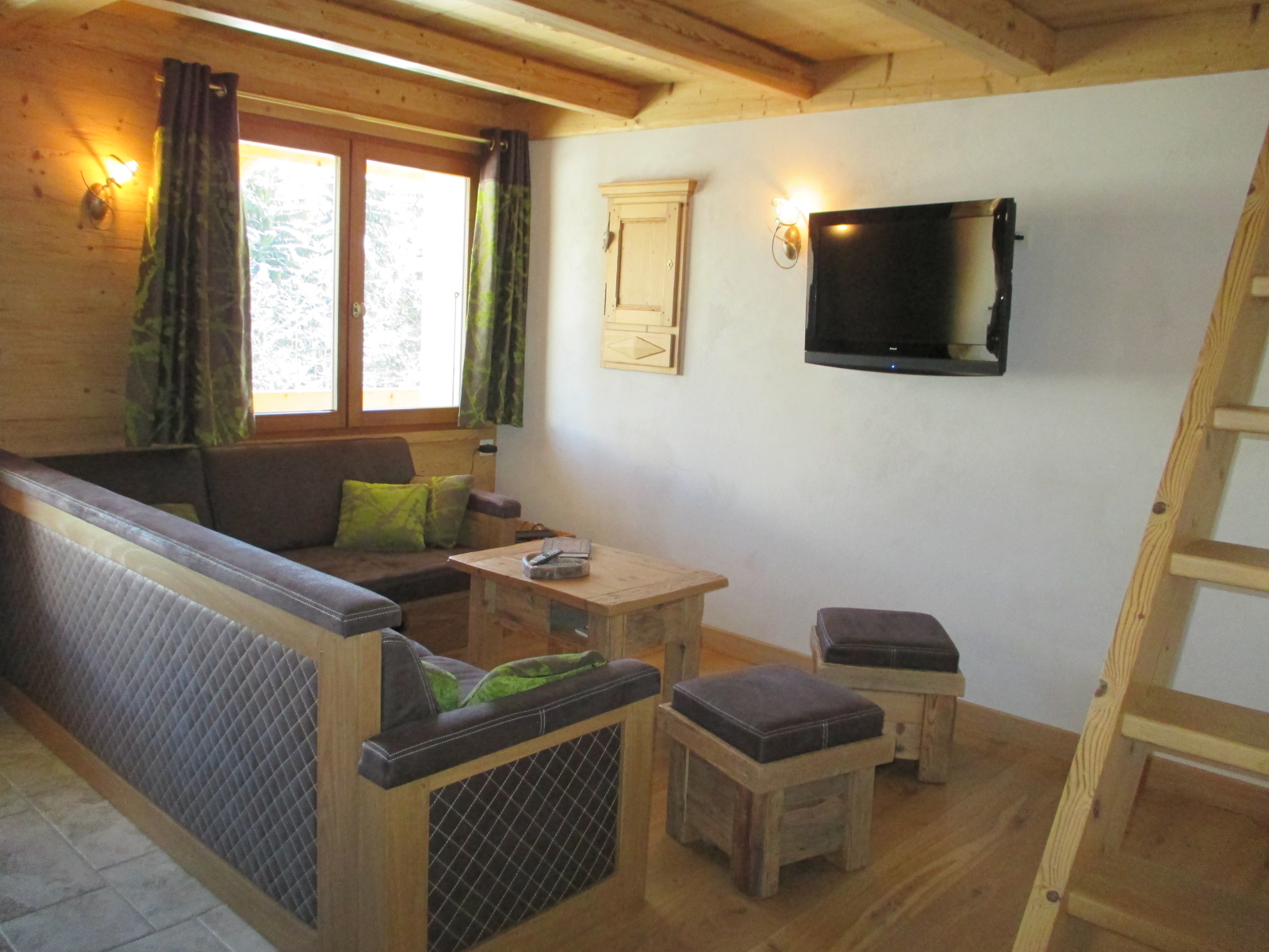 Appartement en rez-de-chaussée de chalet, composé de 2 chambres et d'une cabine, pour 6 personnes. Le plus : Terrasse ensoleillée avec vue imprenable sur les pistes.