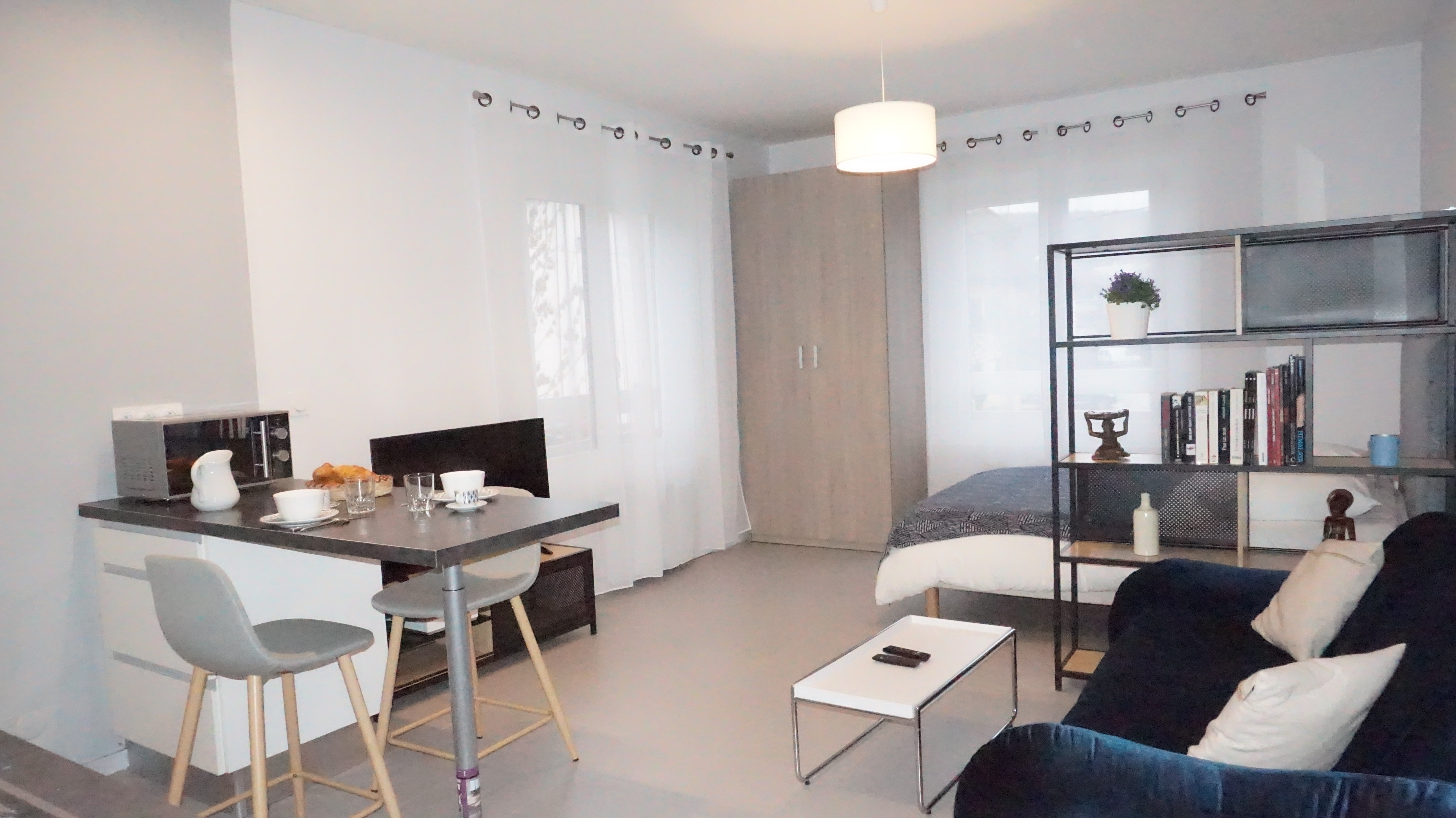 Nous mettons à votre disposition un T1 suréquipé en rez de jardin situé dans un immeuble de standing et doté d’un parking collectif. Cet appartement suréquipé est classé meublé de tourisme 3 étoiles. Il possède certains équipements d'un meublé 4 étoiles.