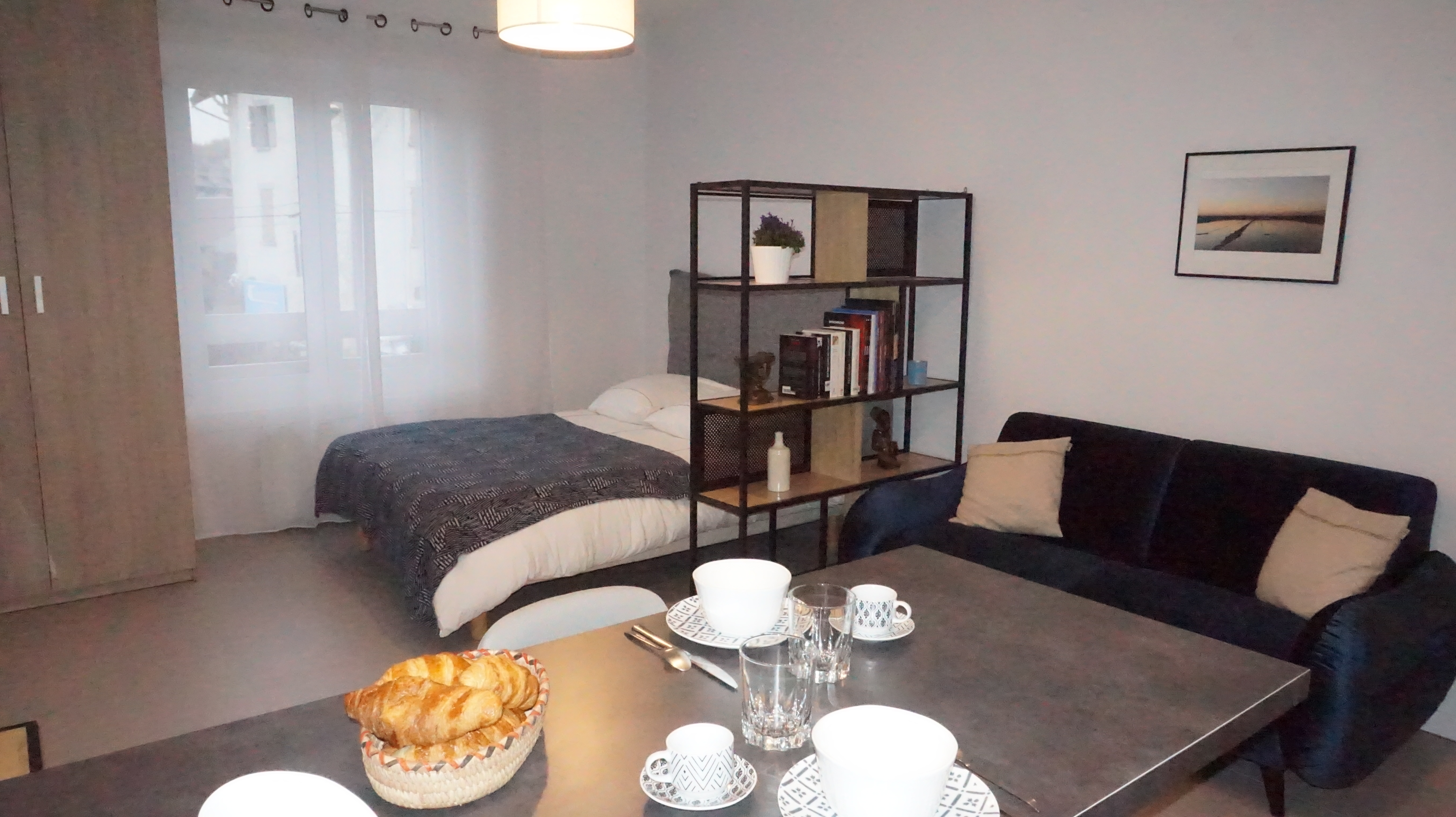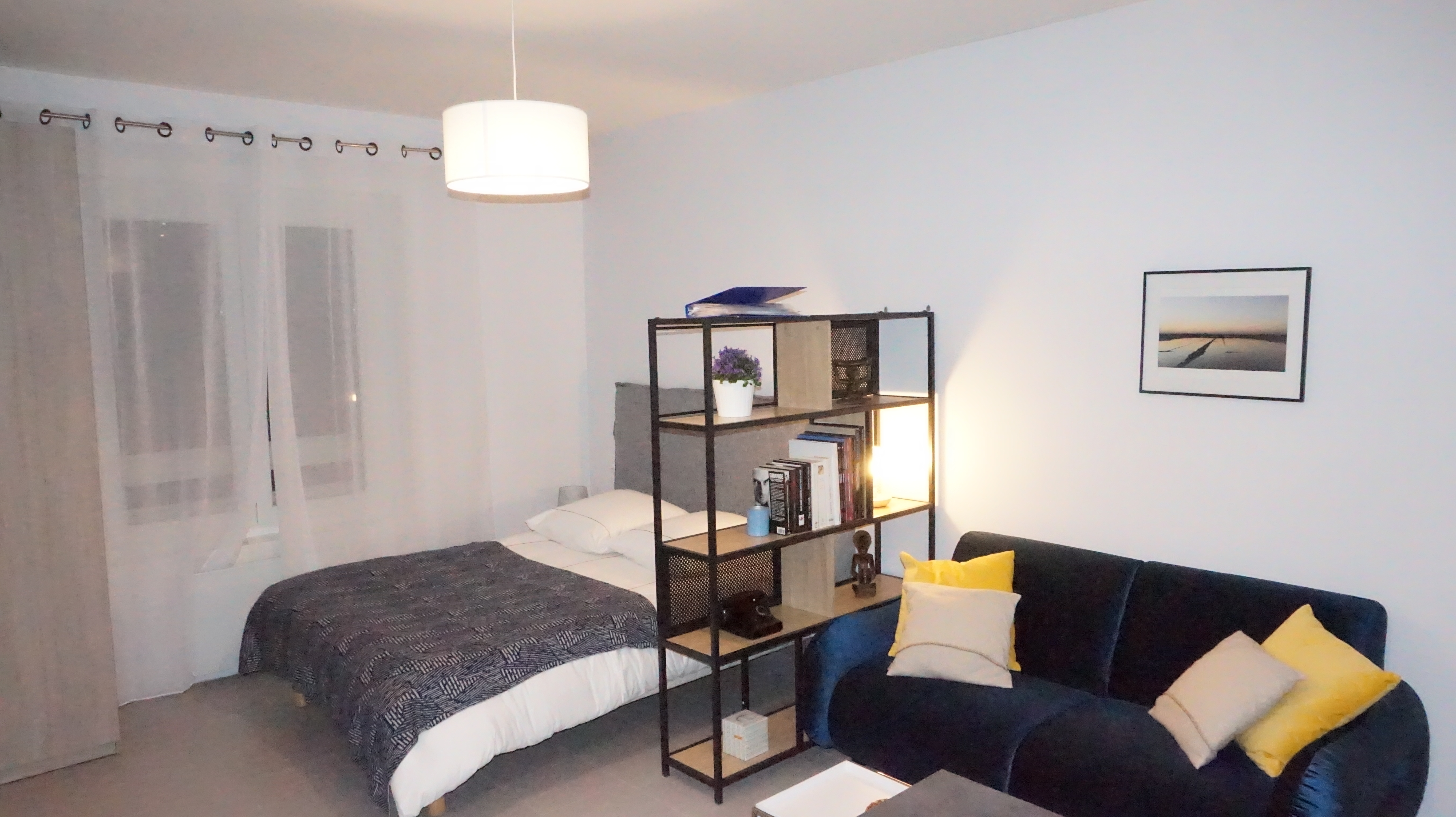 Studio en L de 34m² au rez de chaussée d'une maison calme et proche du centre-ville. (Pièce à vivre de 28m². Salle de bain 6m²)