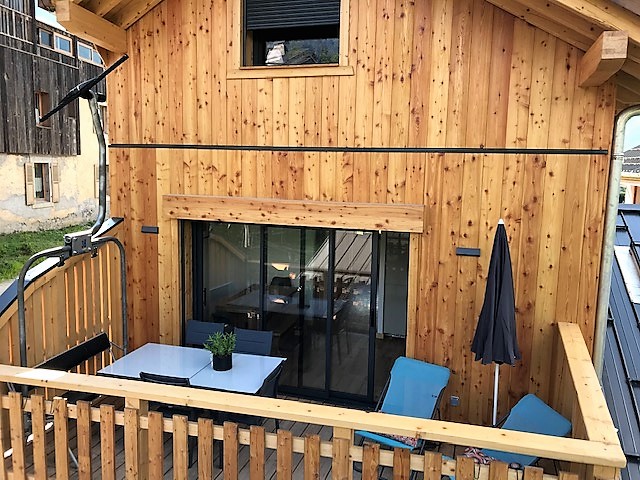 Dans le centre du village de Morillon, cette ancienne grange a été rénovée avec goût par des artisans locaux utilisant des matériaux et un artisanat traditionnels.