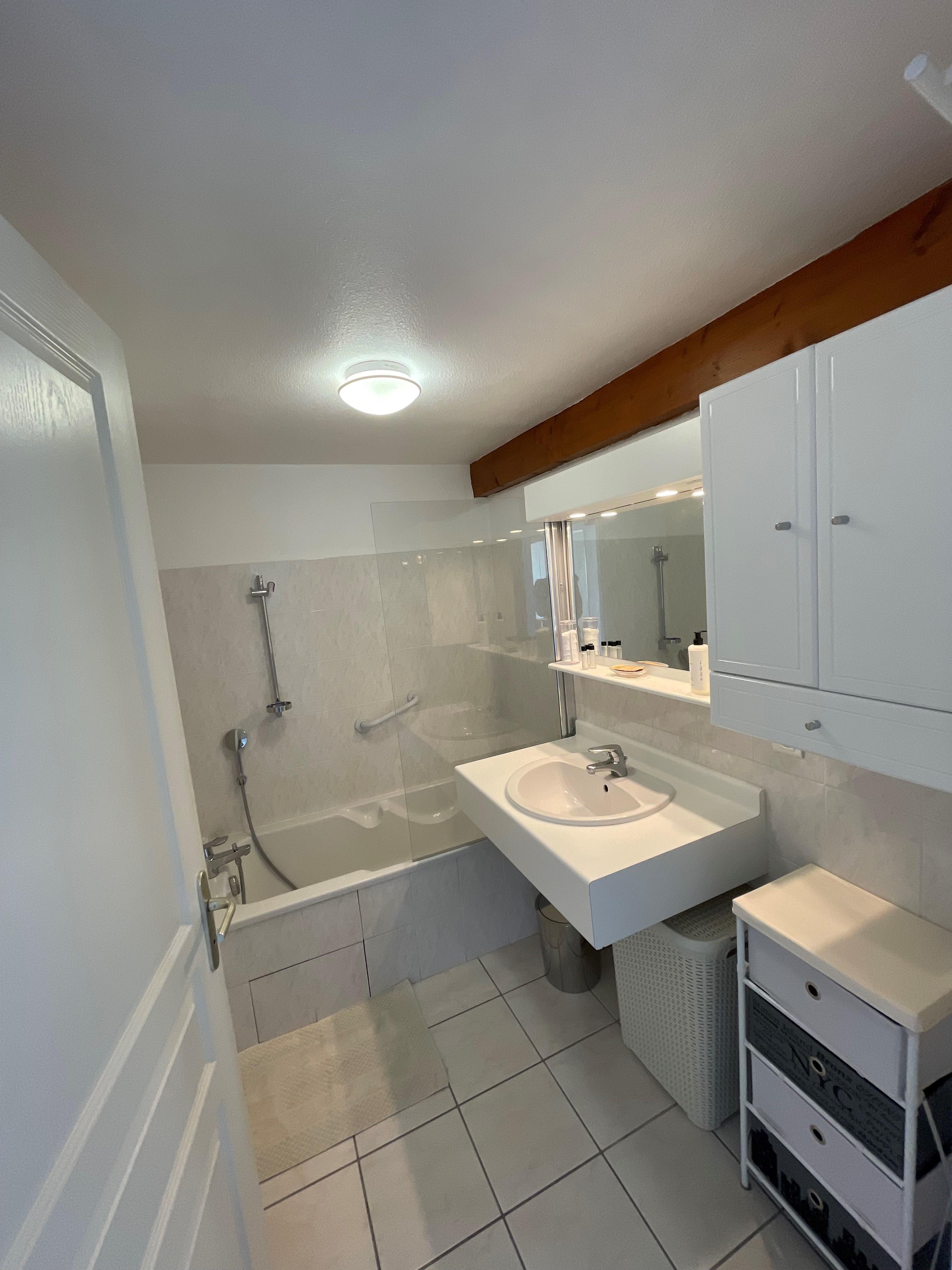 Salle de bain avec baignoire.