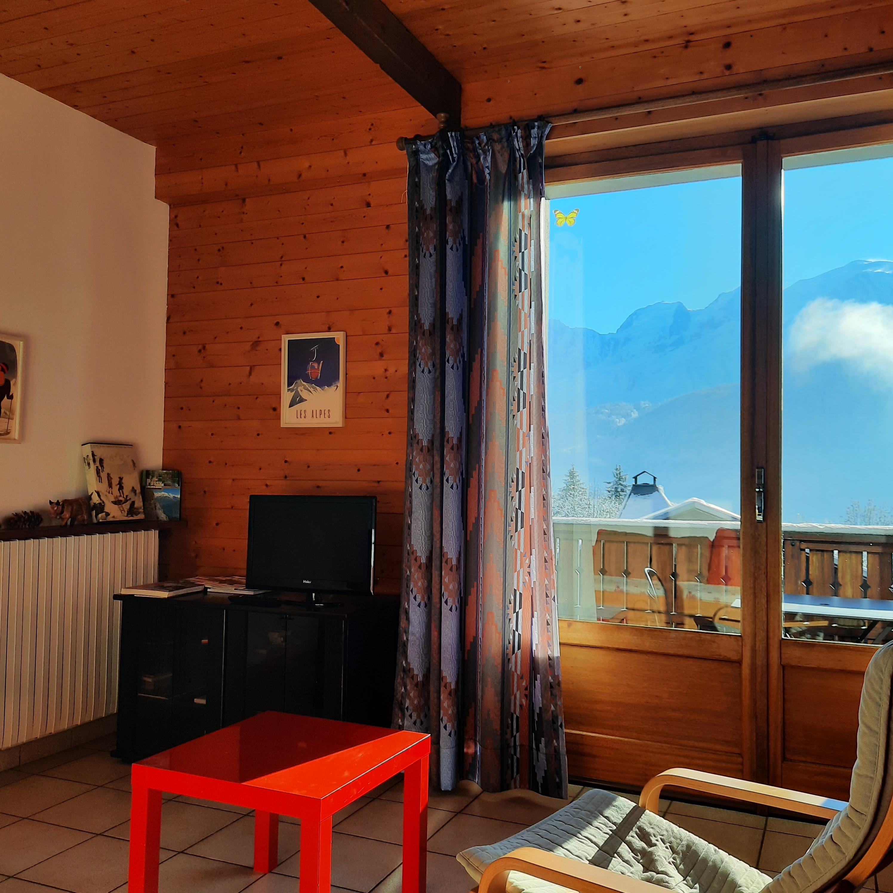 Meublé tourisme 3 étoiles avec une capacité de 6 personnes , 90 m², plain-pied, idéalement situé en face du Mont Blanc.