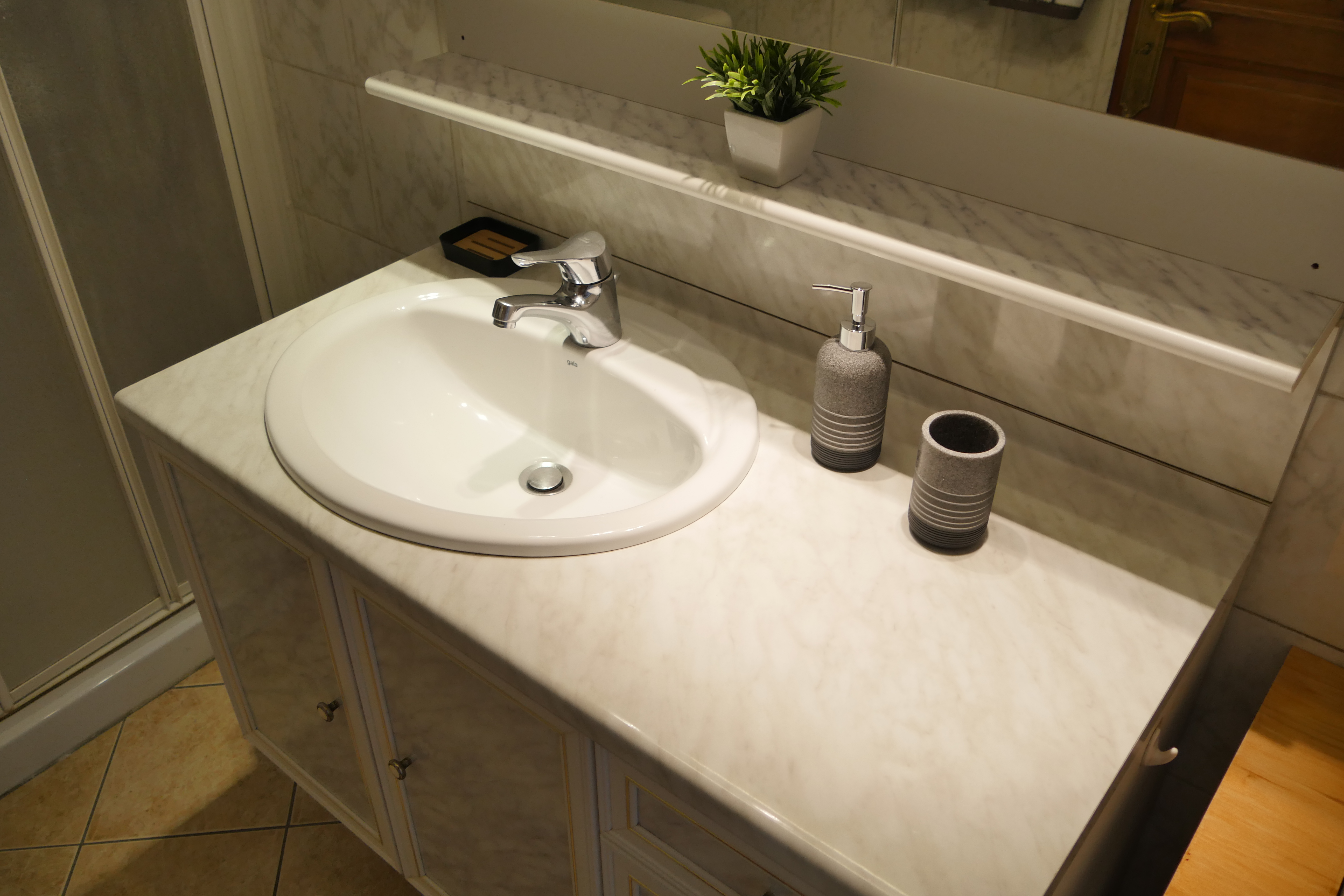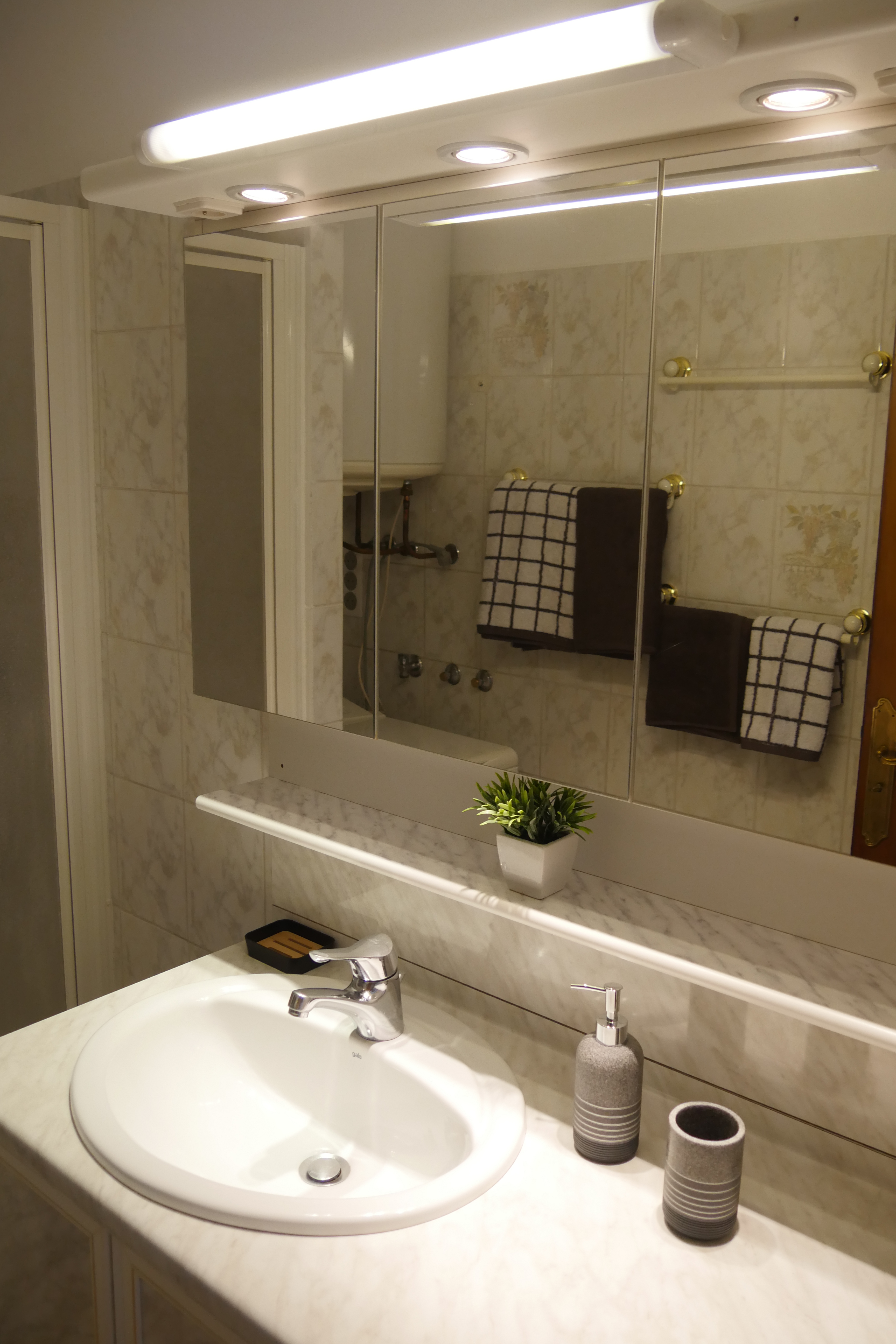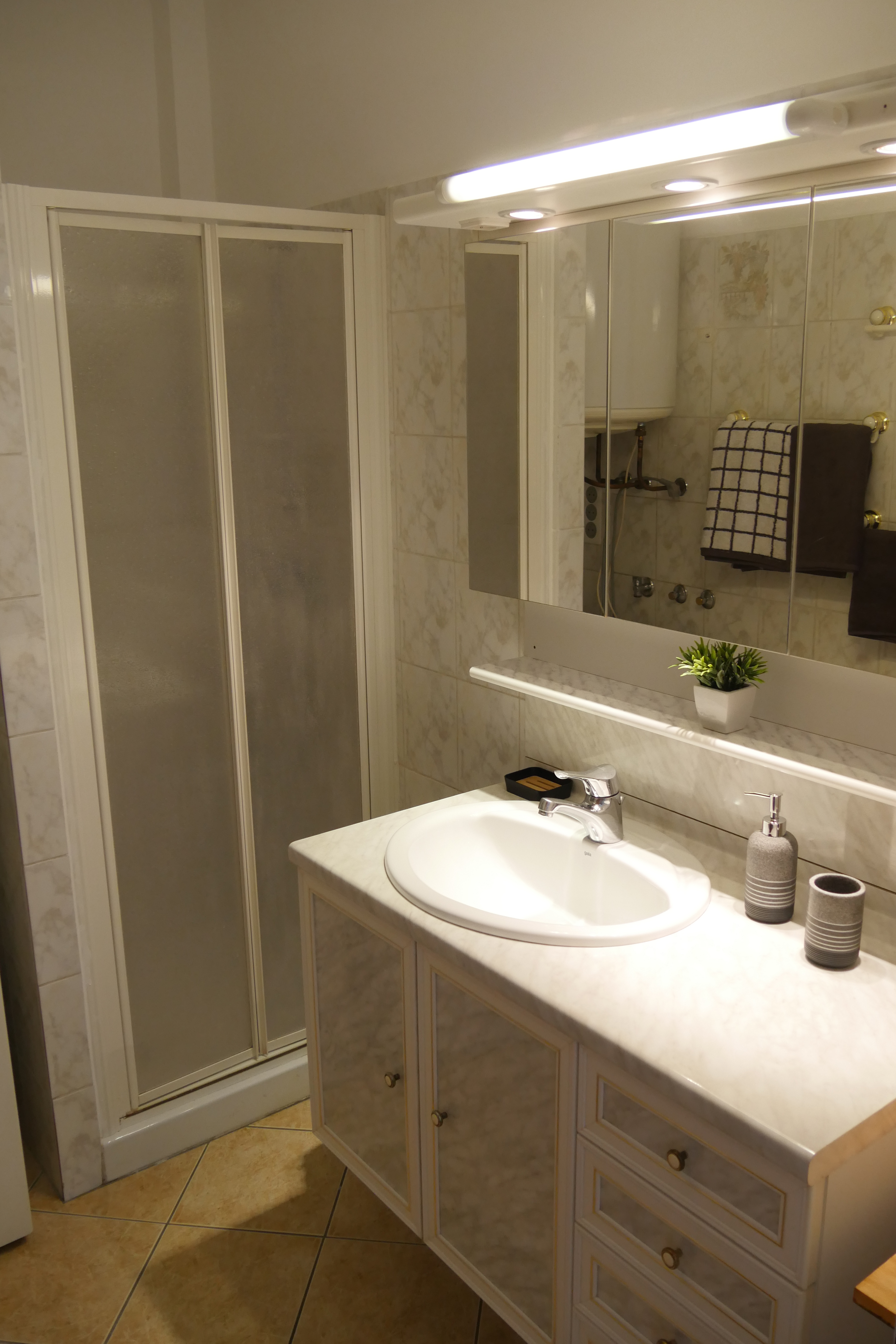 - salle de bains (4m2), douche, meuble simple vasque, machine à laver, linge de maison, gel douche-shampoing, sèche-cheveux,