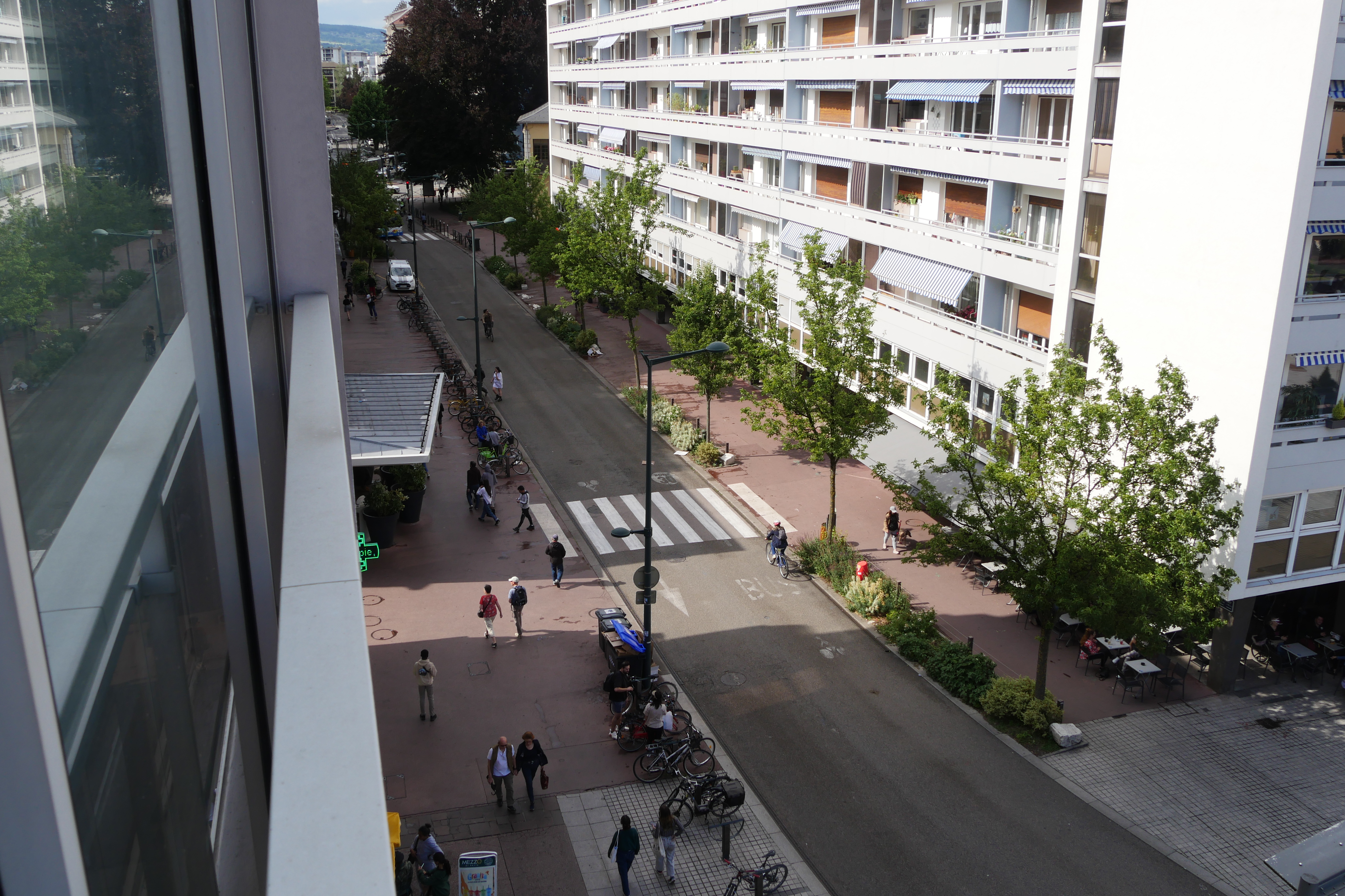 Location très ensoleillée, donnant sur des espaces verts. Plein centre ville, proche vieille ville et gare. A 900m du lac. Tranquillité et verdure. Loggia de 9m². 2 vélos à disposition.