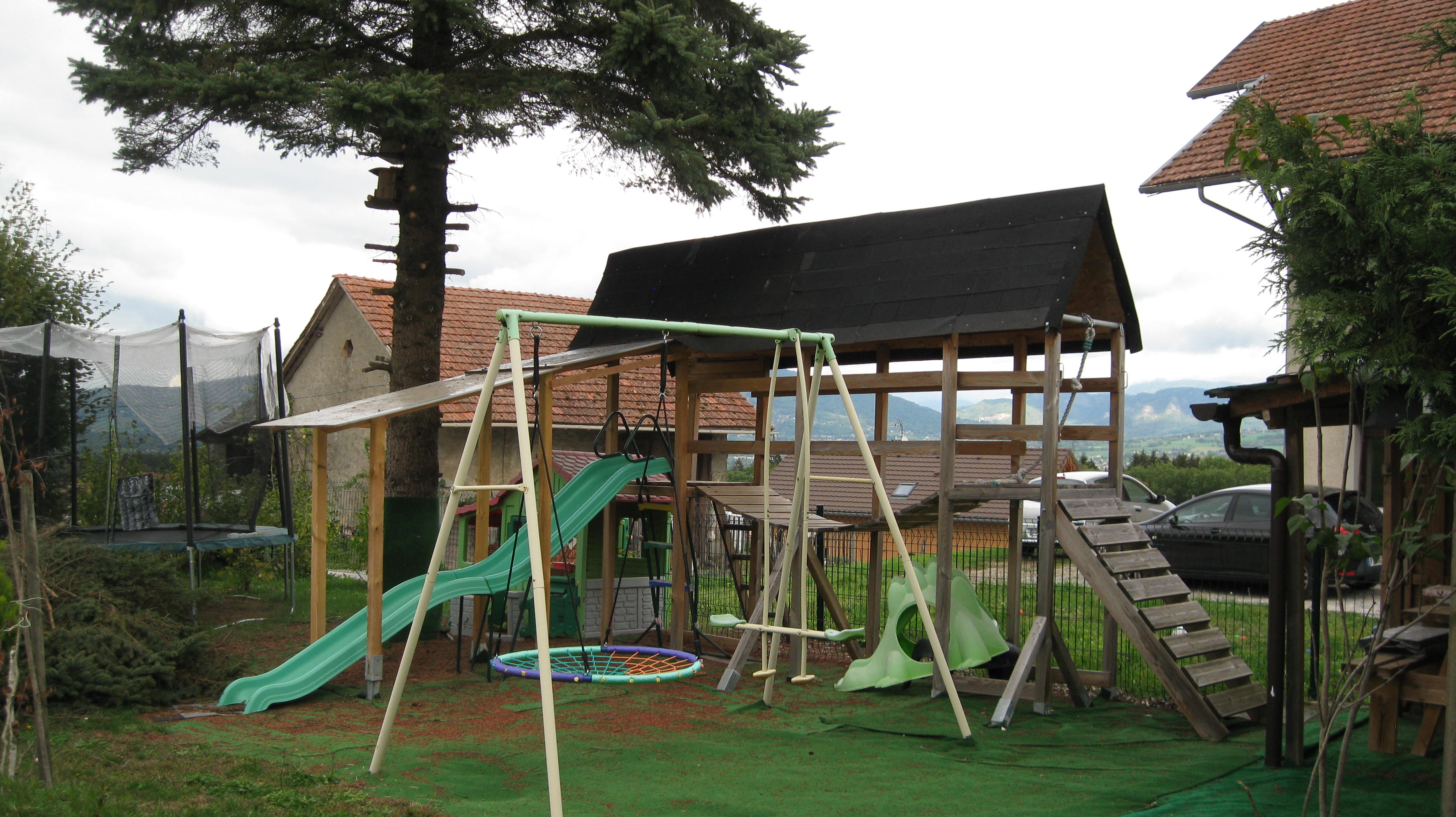 L'habitation est indépendante, elle se situe à l'entrée de la propriété. Un balcon avec vue sur les montagnes. Aire de jeux pour les enfants avec balançoire, trampoline, petit chalet, terrain de boule, table de ping-pong, jeu de palets.