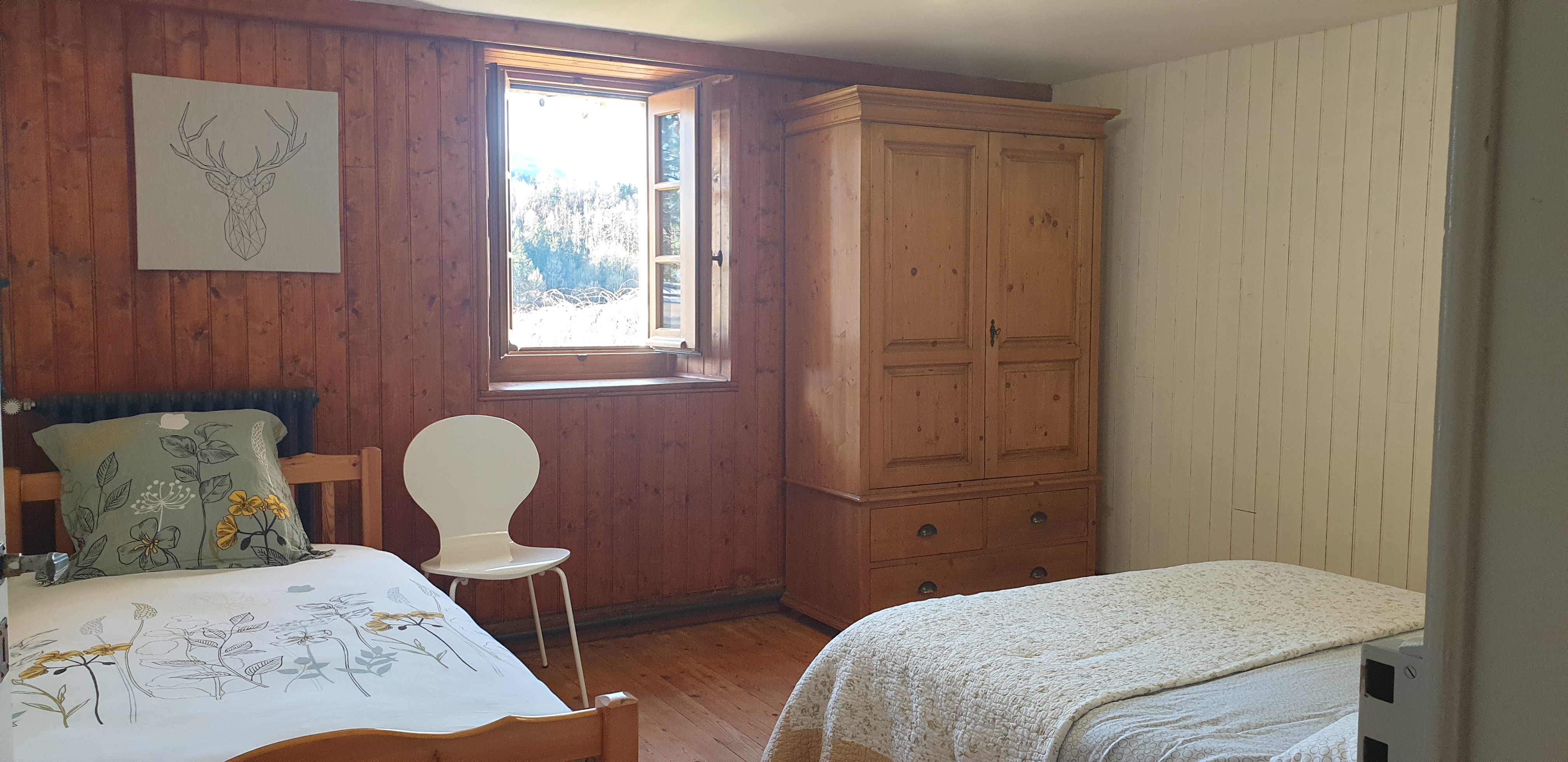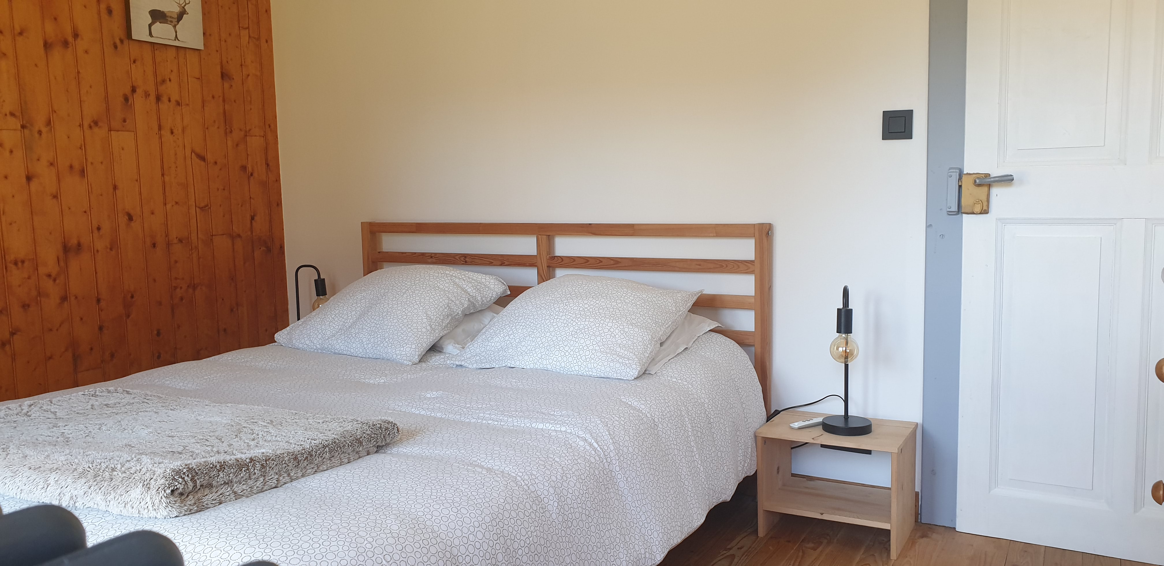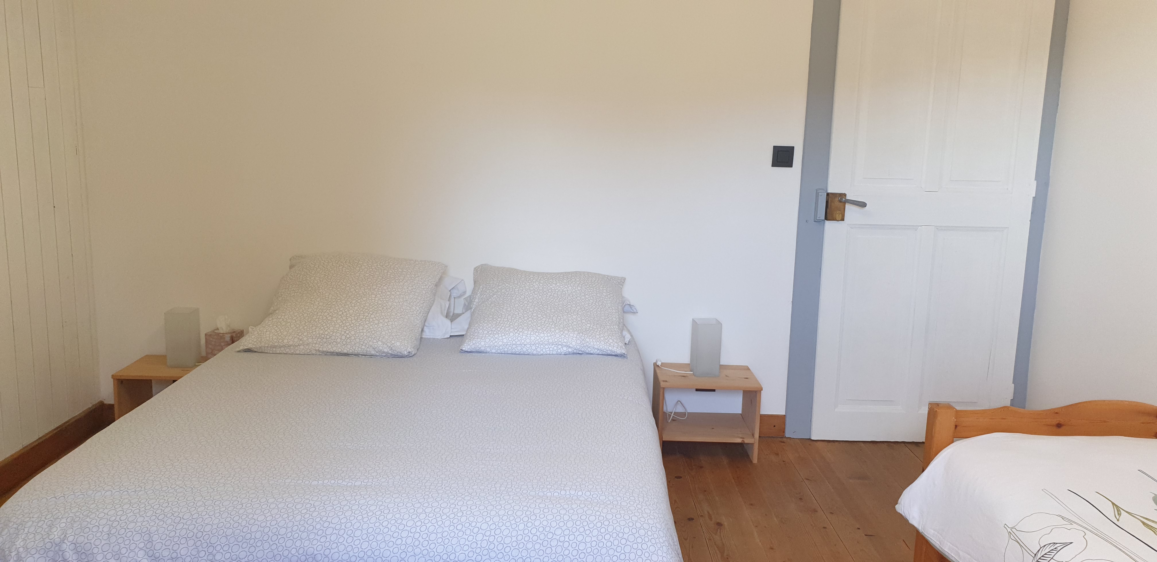Chambre 1 : 1 lit de 140 x 200 pour 2 personnes et 1 lit de 90 x 200 pour 1 personne