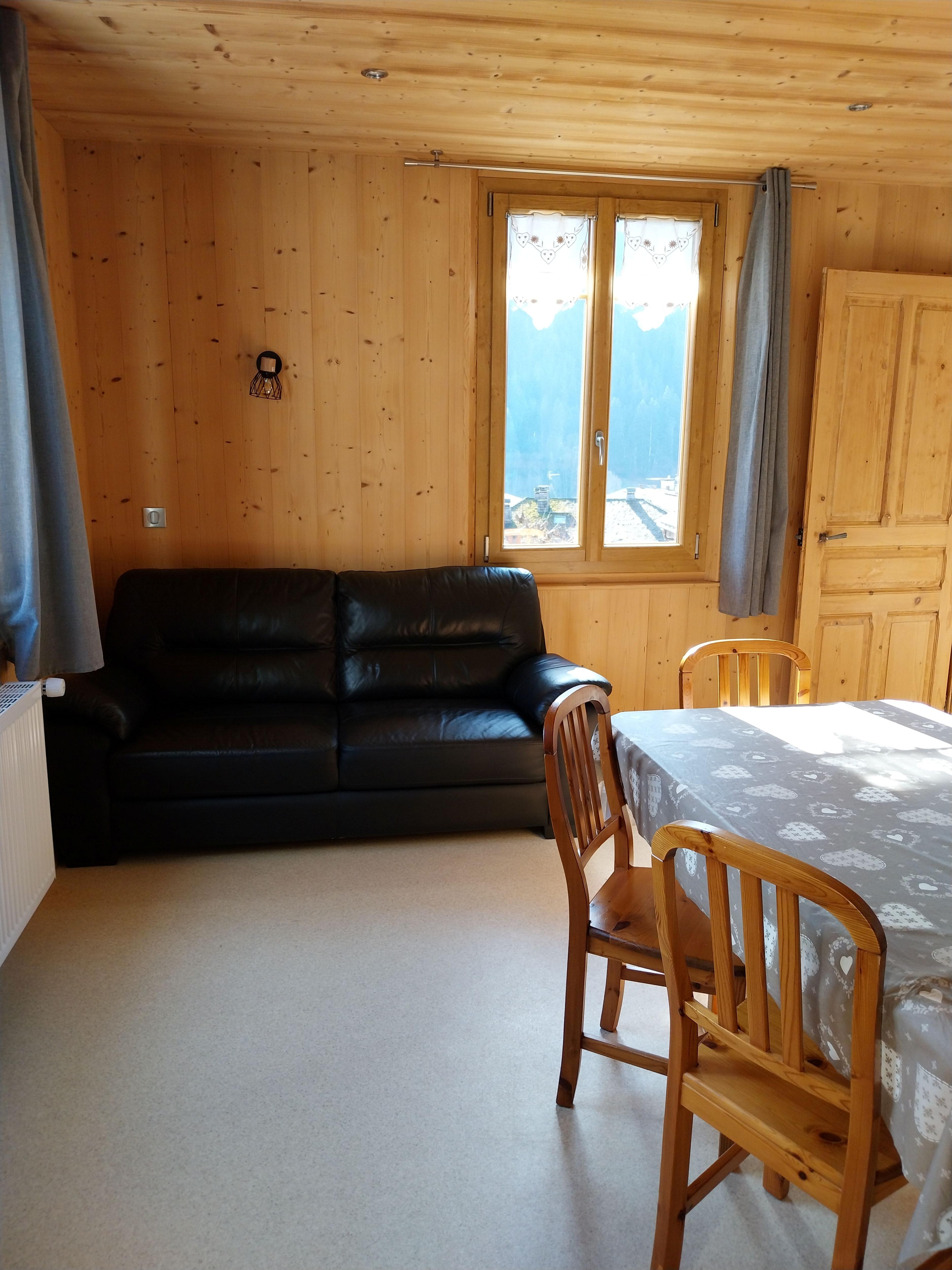 Appartement de 40 m² pour 4 personnes (chambre familiale), au rez-de-chaussée d'un chalet vous permettant de profiter de sa terrasse exposée sud avec salon de jardin, barbecue, espaces verts et vue dégagée sur les montagnes environnantes.