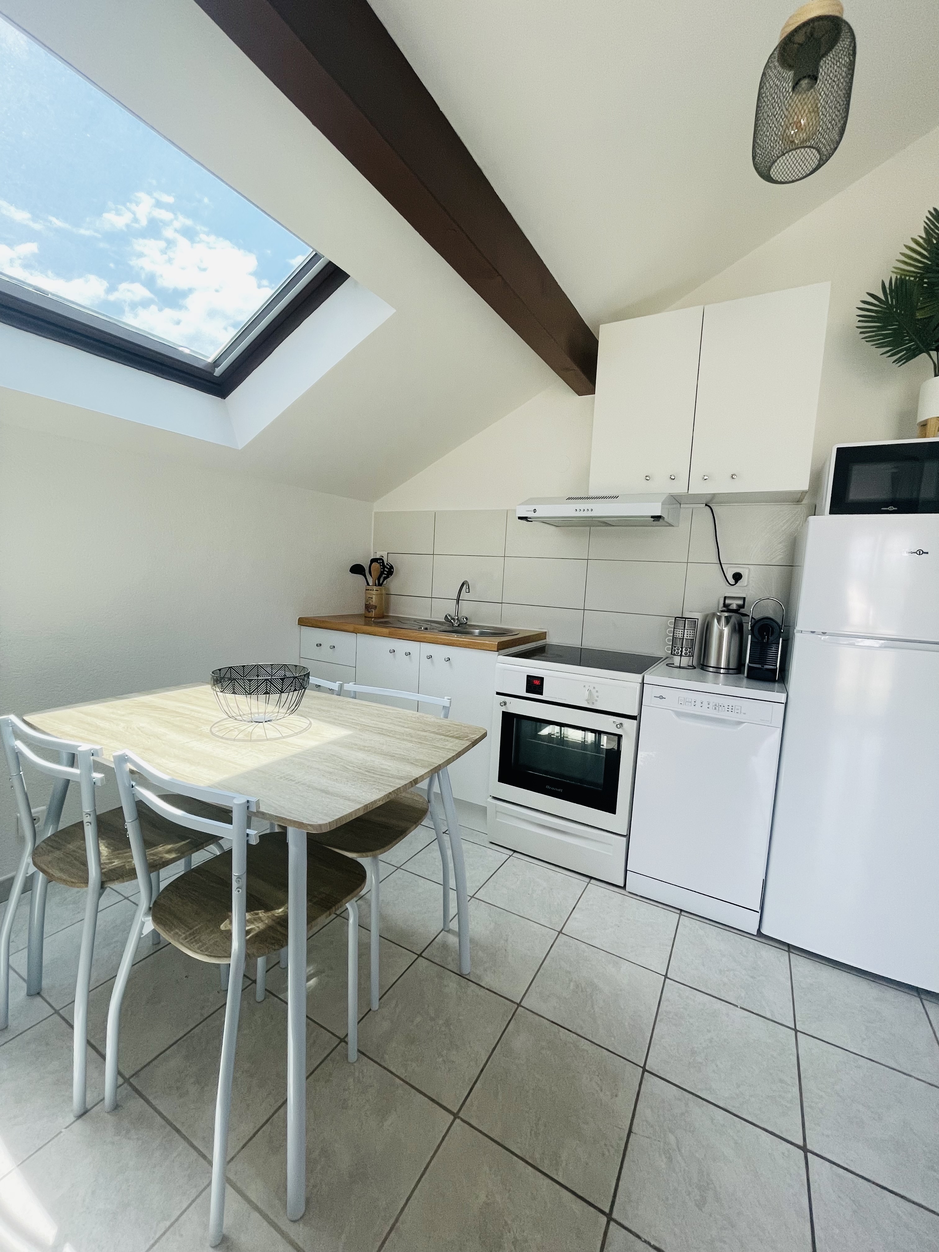 La cuisine est entièrement équipée et possède de nombreux appareils utiles (lave vaisselle, grille-pain, bouilloire, micro-onde, frigo, congélateur, four, plaque vitro céramique, appareil à fondue, appareil à raclette, machine à café Nespresso...) ou intéressants (à découvrir sur place).