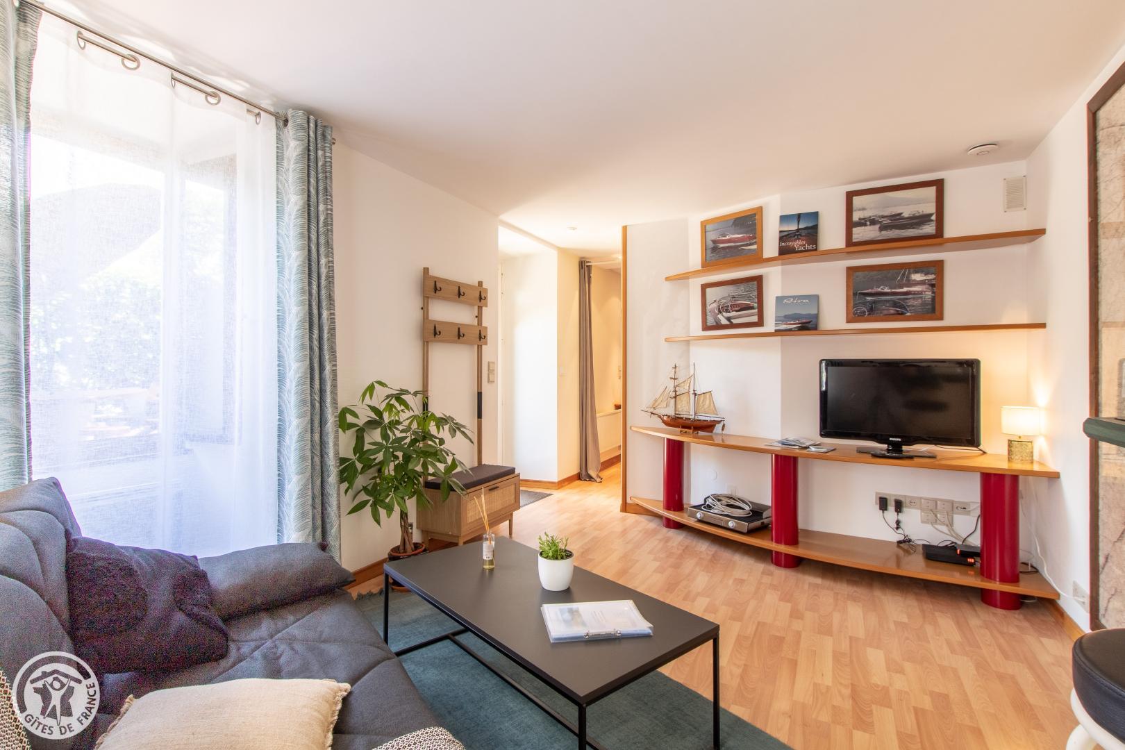 Appartement cosy de 38m2 avec terrasse et parking privatif en rez-de-jardin d'une petite copropriété située à 900m du lac et de la piste cyclable.