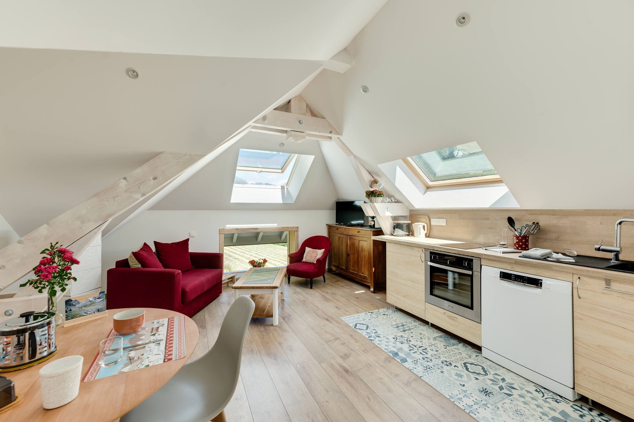 Vous avez à votre disposition une table de jardin, deux chaises et deux transats pour profiter de la vue en extérieur.